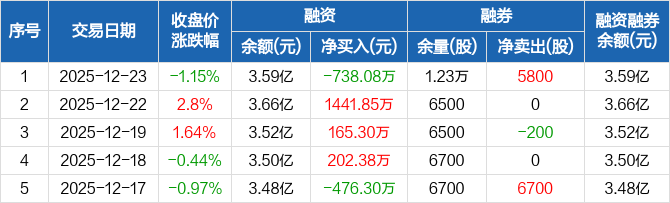 香溢融通:融资净偿还738.08万元,融资余额3.59亿元(12-23)
