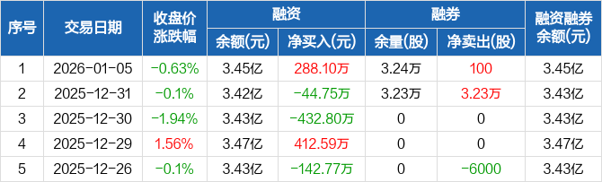 香溢融通:融资净买入288.1万元,融资余额3.45亿元(01-05)