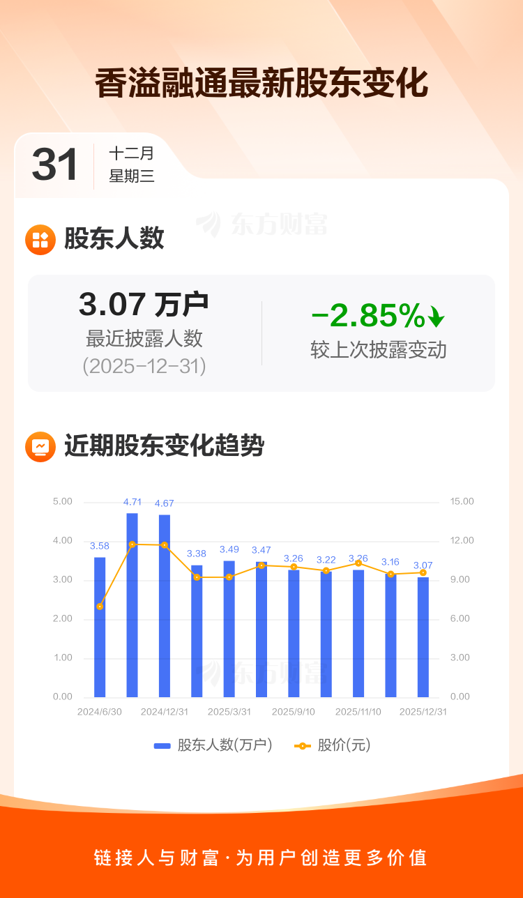 香溢融通:截至12月31日最新股东户数3.07万户,较上期减少2.85%