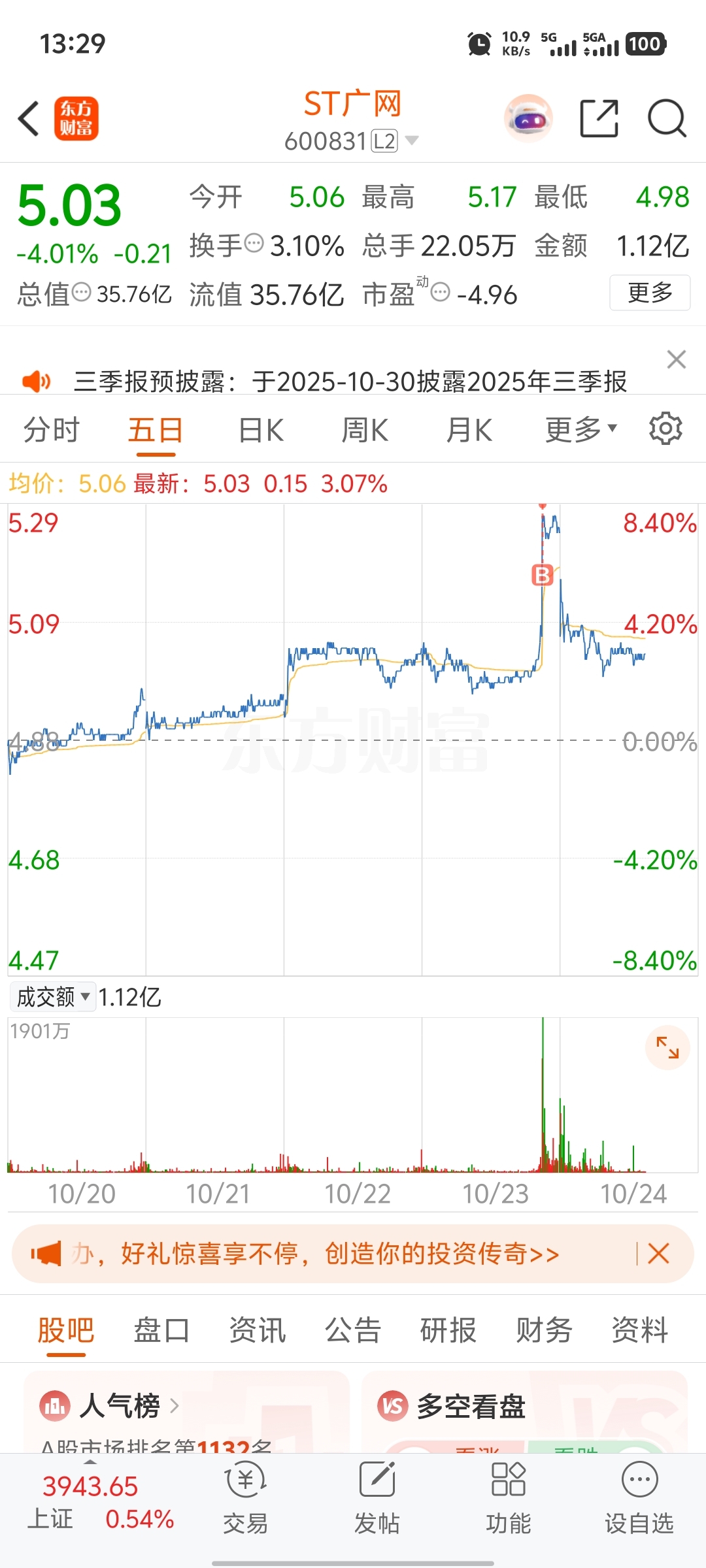 $ST广网(SH600831)$ 泪水止不住往下流,屋漏偏逢连夜雨