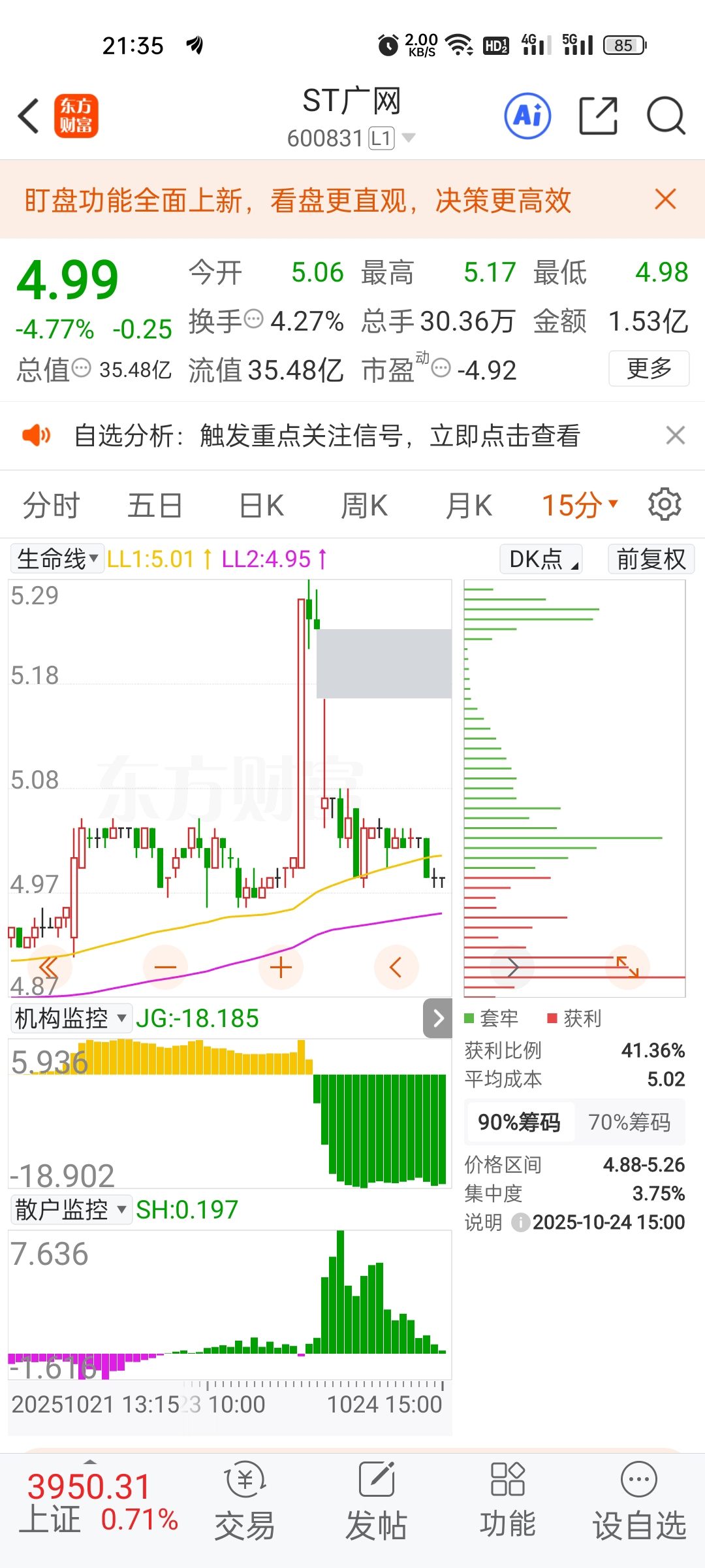 $ST广网(SH600831)$ 这是东方财富收费指标,机构越出越多,散户越进越少!可是成交量放大,就是买卖增加,谁接的筹码?