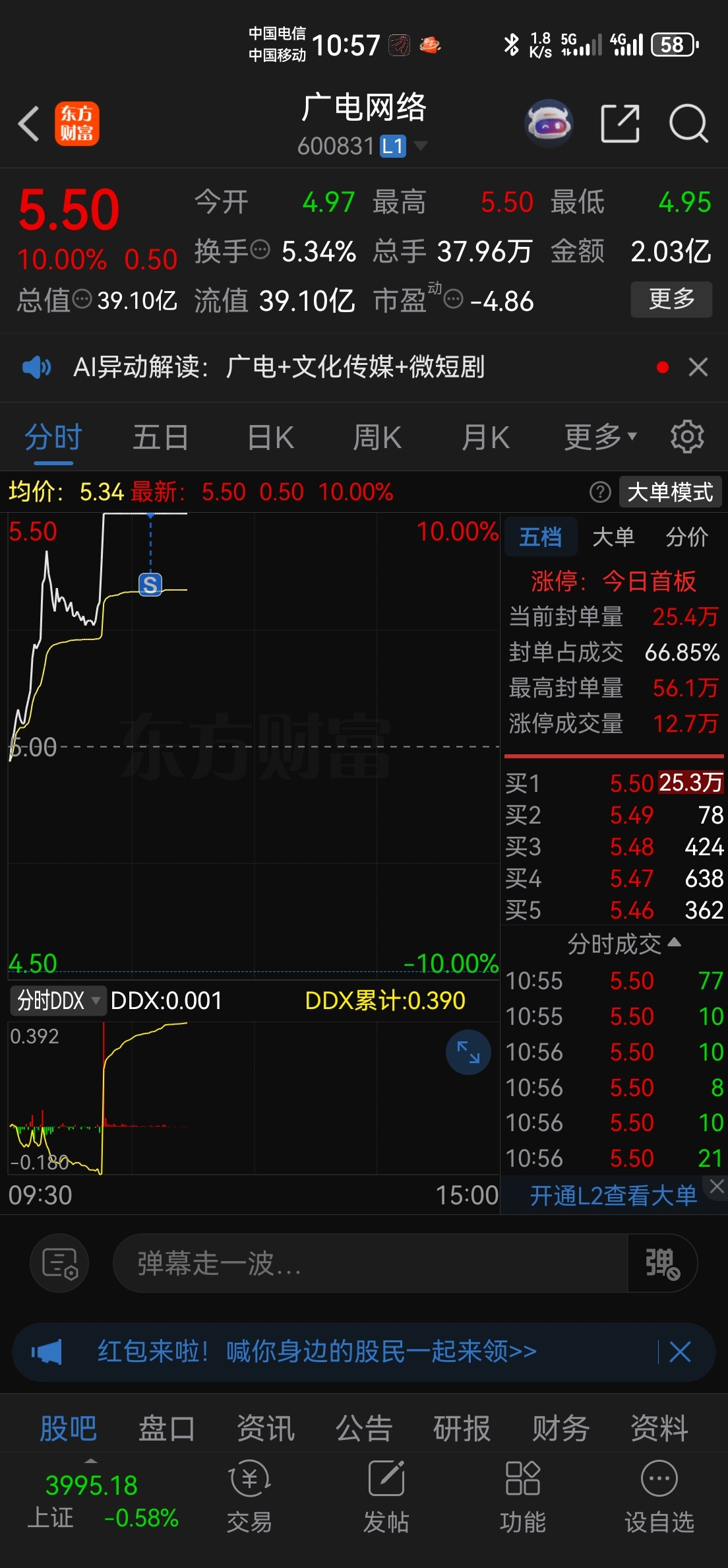 $广电网络(SH600831)$ 走了,谢谢主力!