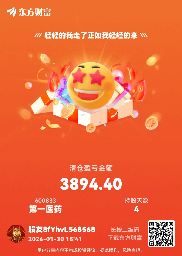 $第一医药(SH600833)$ 今天落袋两只票