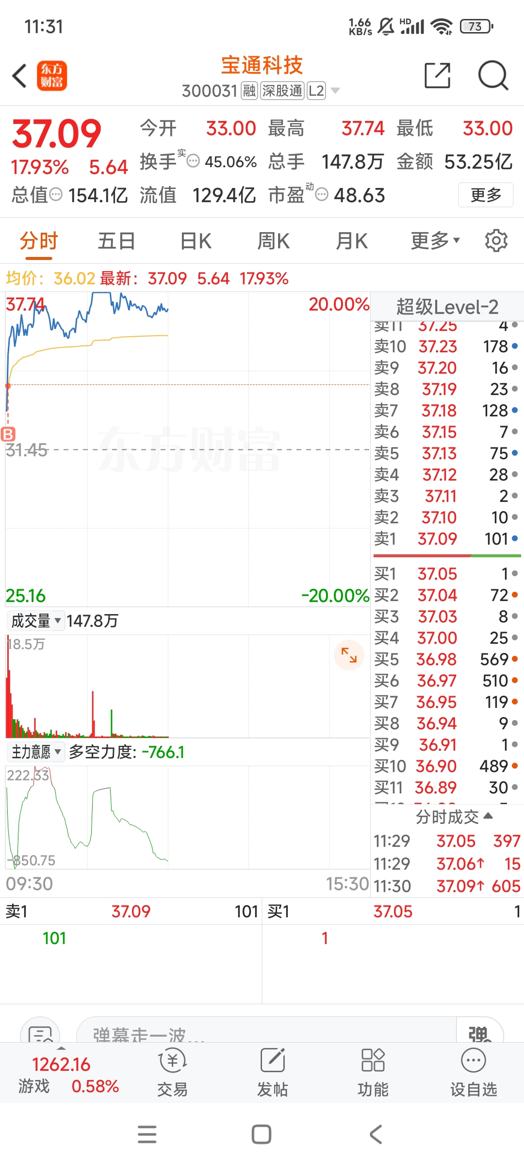 退潮了,今日不宜操作。娱乐仓玩了下宝通科技