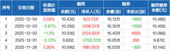 上海机电:融资余额10.43亿元,创近一年新高(12-04)
