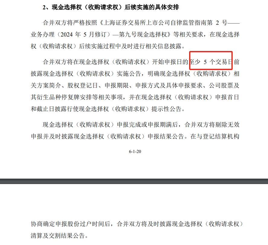 感觉应该是年后停牌了,提供现金选择权要提前5个交易日公告,目前距离春节已经不足5个交易日了。