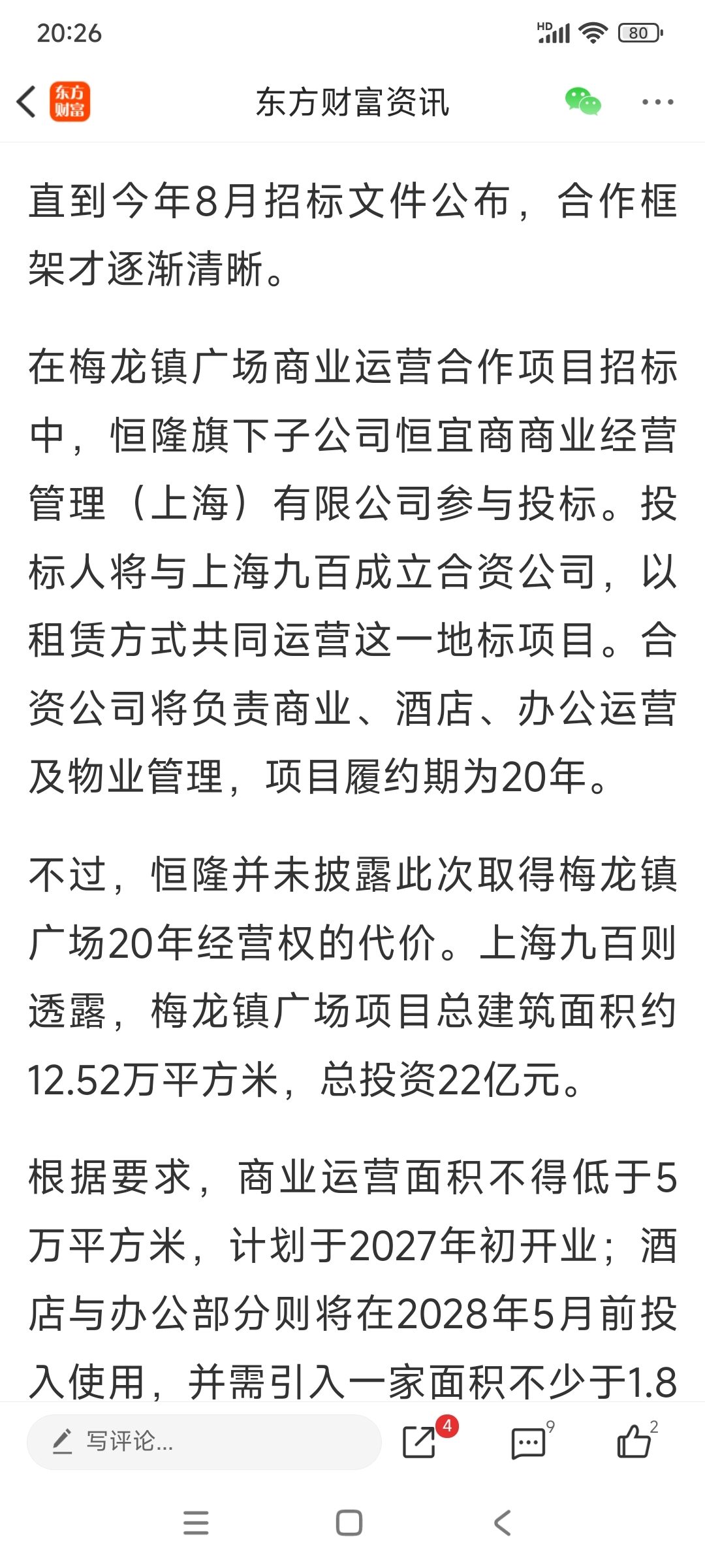 $上海九百(SH600838)$ 等了很多年,上市公司上海九百终于开始大动作了,参与南京西路1038号商业项目运营公司,出资2.58亿,占运营公司30%股权!项目开业后,九百营收净利润将翻多少倍?!这是积极响应扩大内需的要求!上面把扩大内需定位是战略之举!!!