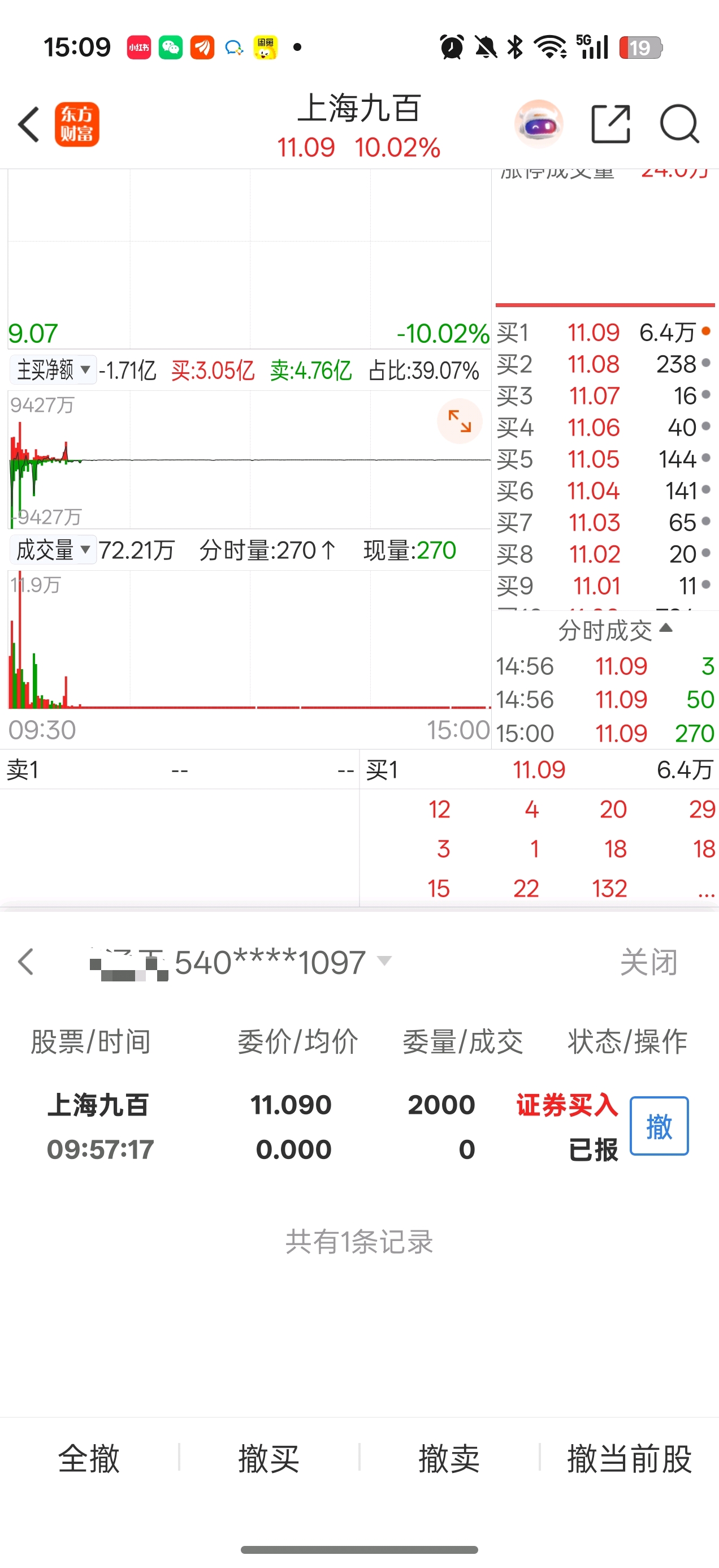 $上海九百(SH600838)$ 排了一天,就差最后16手就到我了,真的好气啊