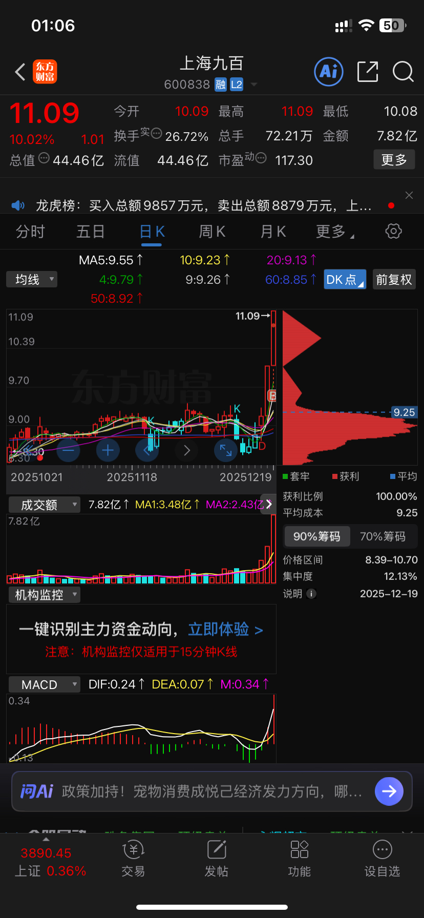 $上海九百(SH600838)$ 下周一分歧就加仓干
