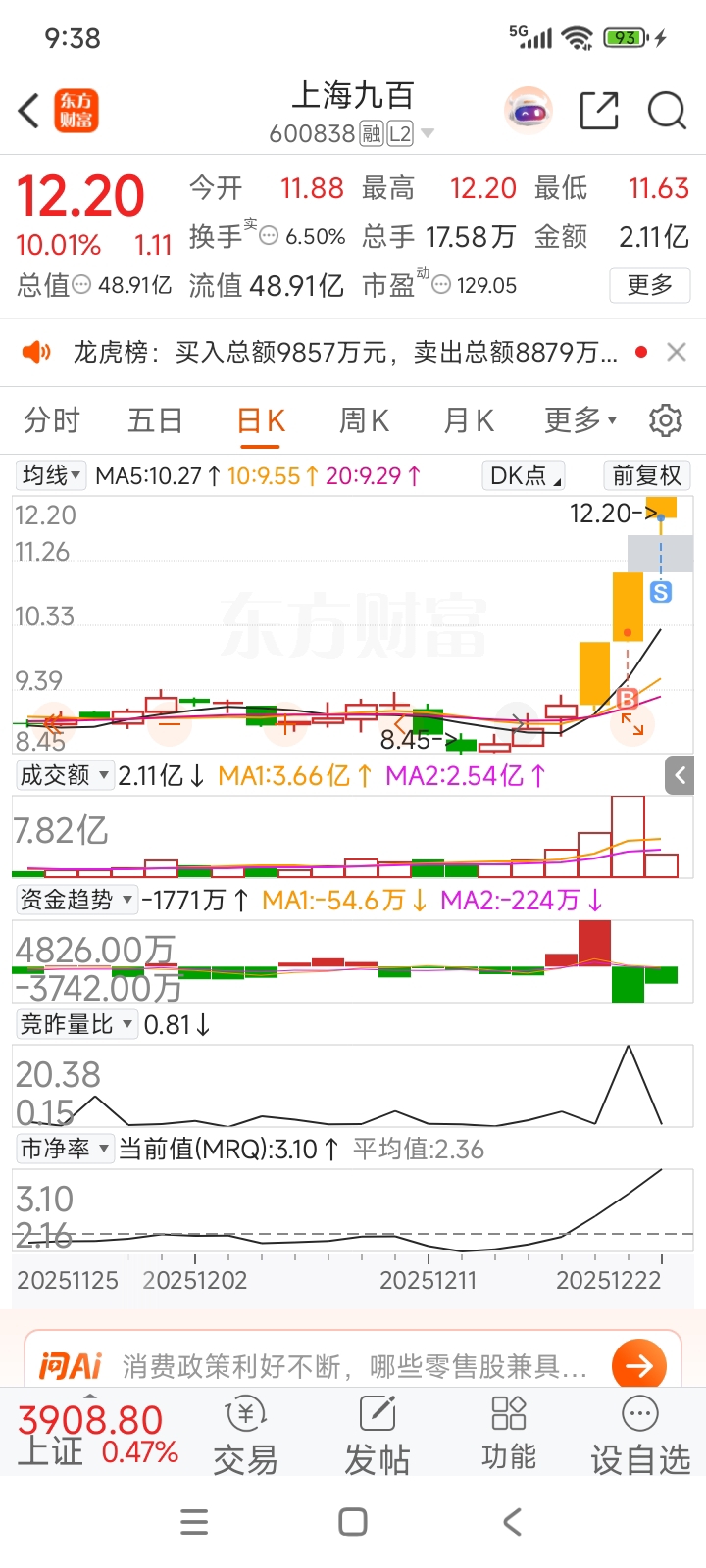 $上海九百(SH600838)$ 虽然赚了一大坨,但我不满意