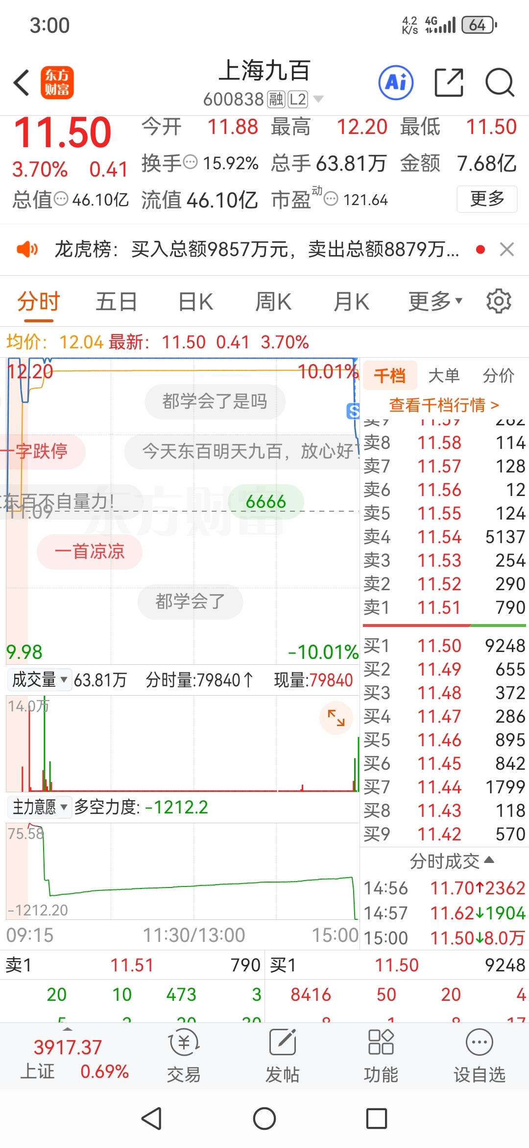 $上海九百(SH600838)$ 真是防不胜防,不炸明天一字板的