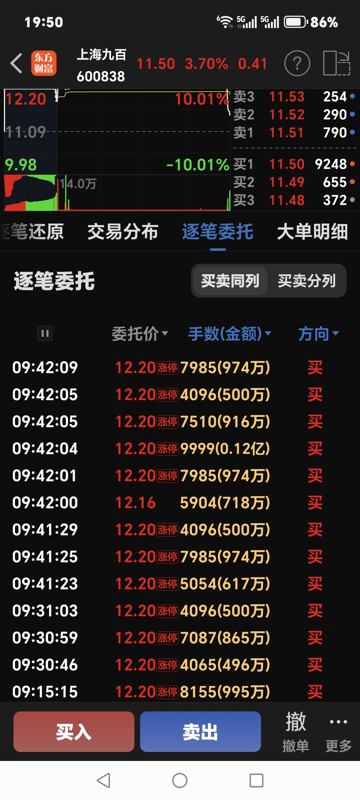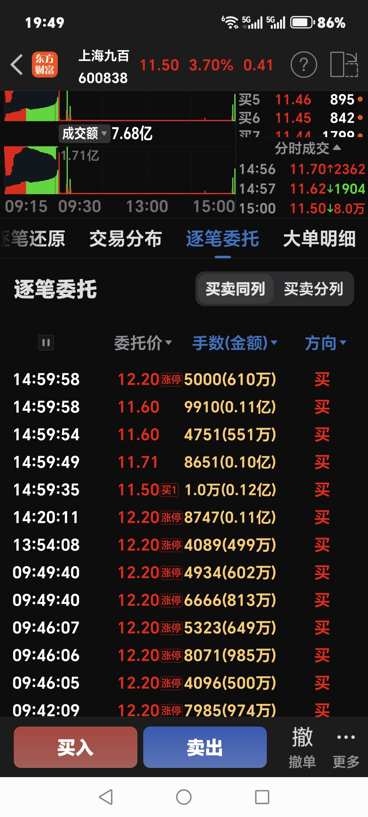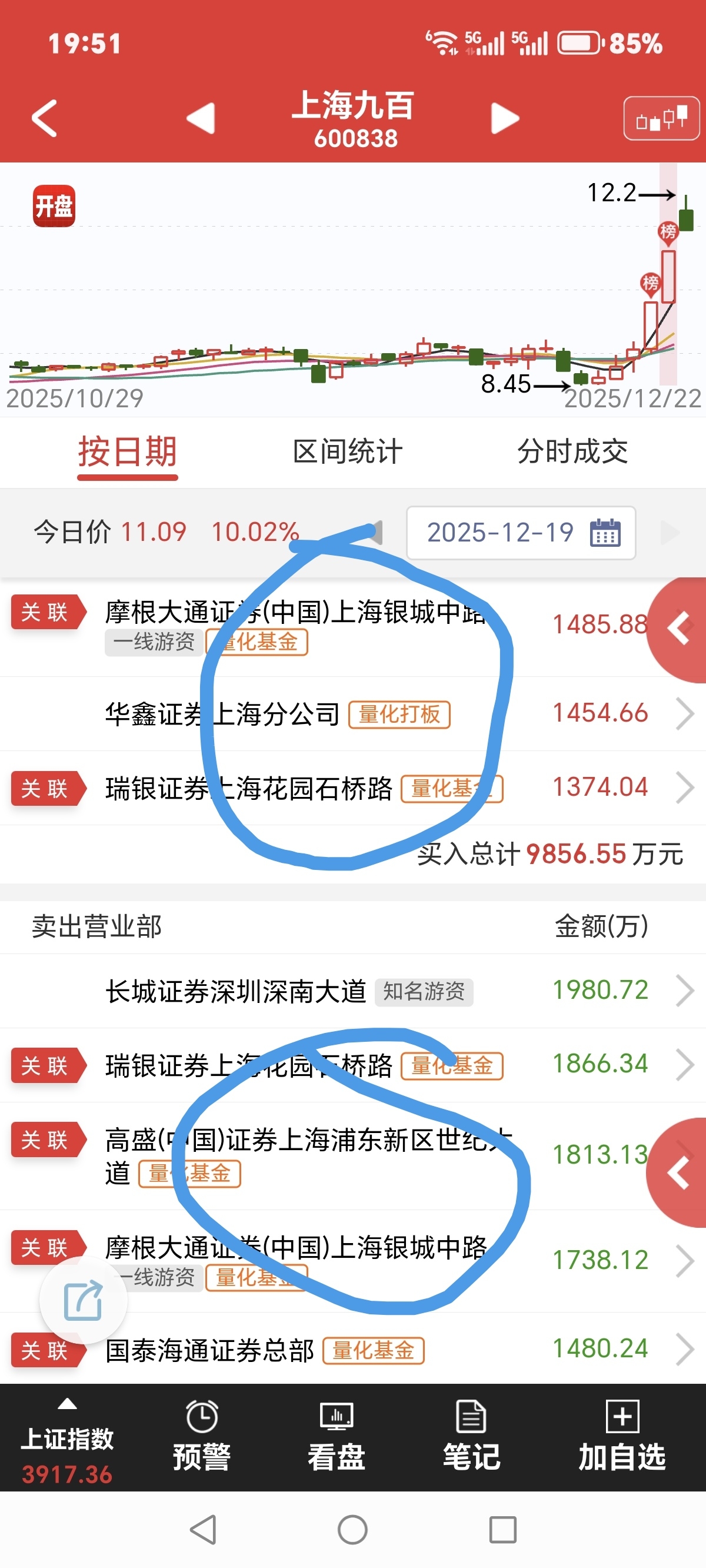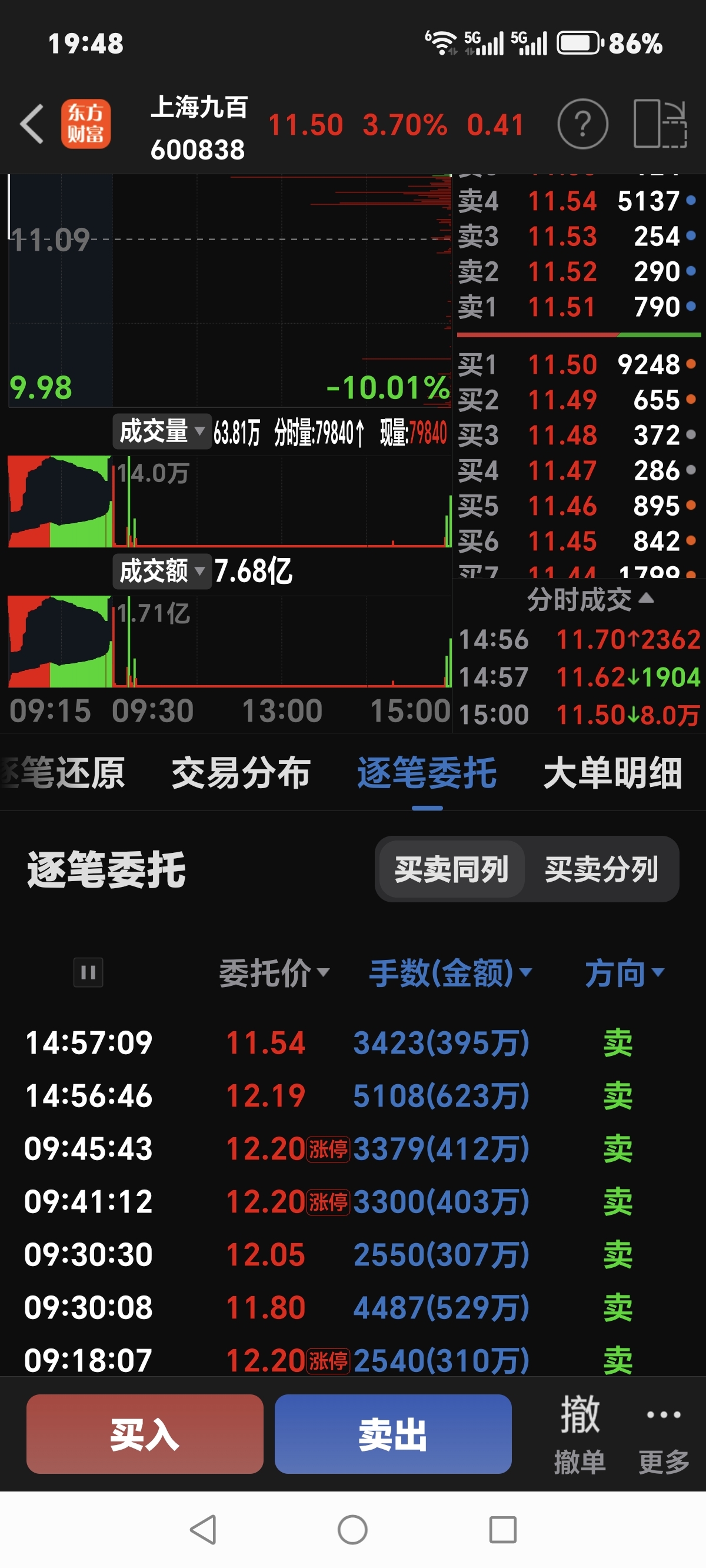 $上海九百(SH600838)$ 分析一下今天是谁砸下来的: