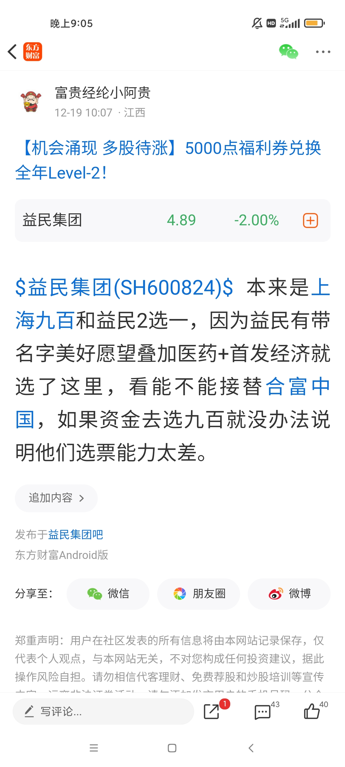 温馨提示: 1.根据《证券法》规定,禁止编造、传播虚假信息或者误导性信息,扰乱证券市场;2.用户在本社区发表的所有资料、言论等仅代表个人观点,与本网站立场无关,不对您构成任何投资建议。用户应基于自己的独立判断,自行决定证券投资并承担相应风险。《东方财富社区管理规定》