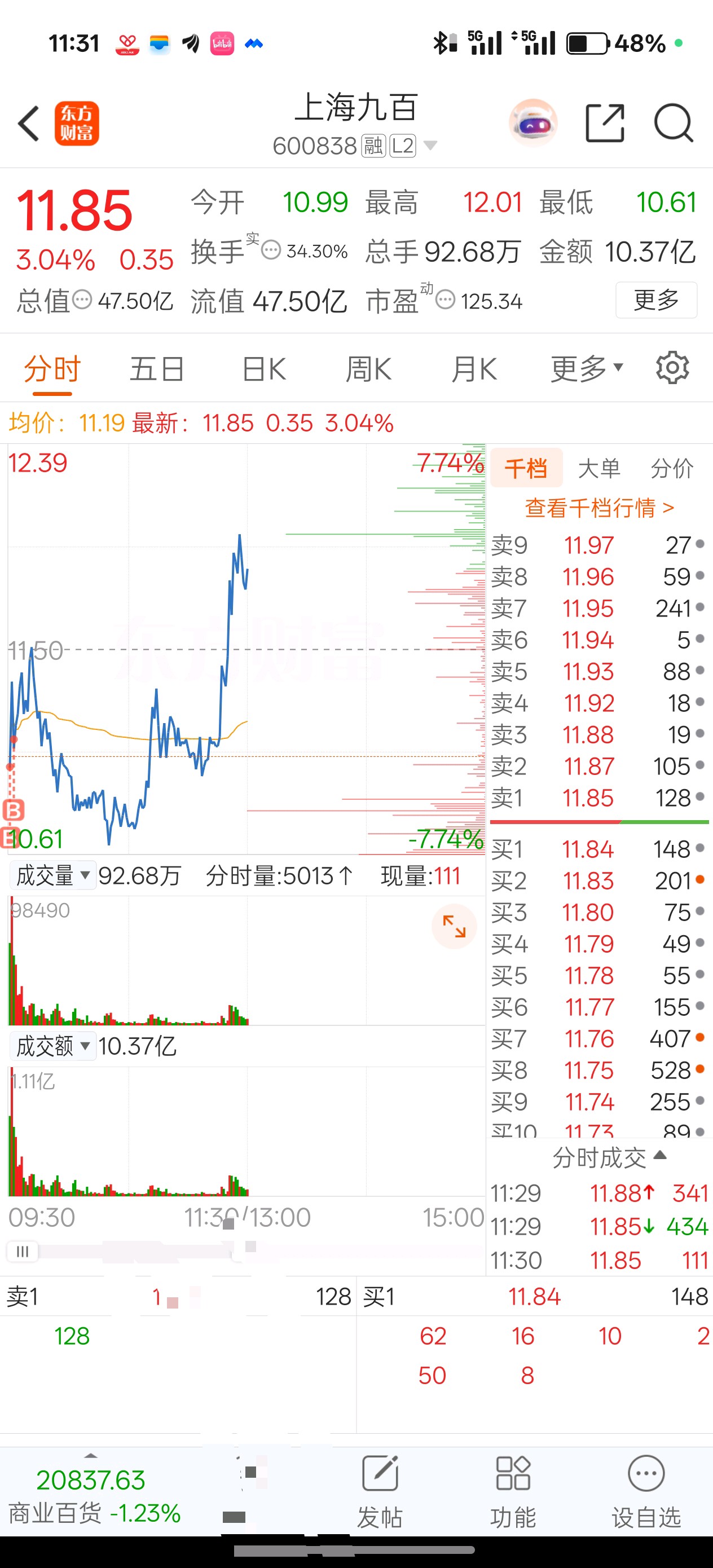 按计划竞价买入上海九百,目前红七个多点,小喷子们割肉了吗?