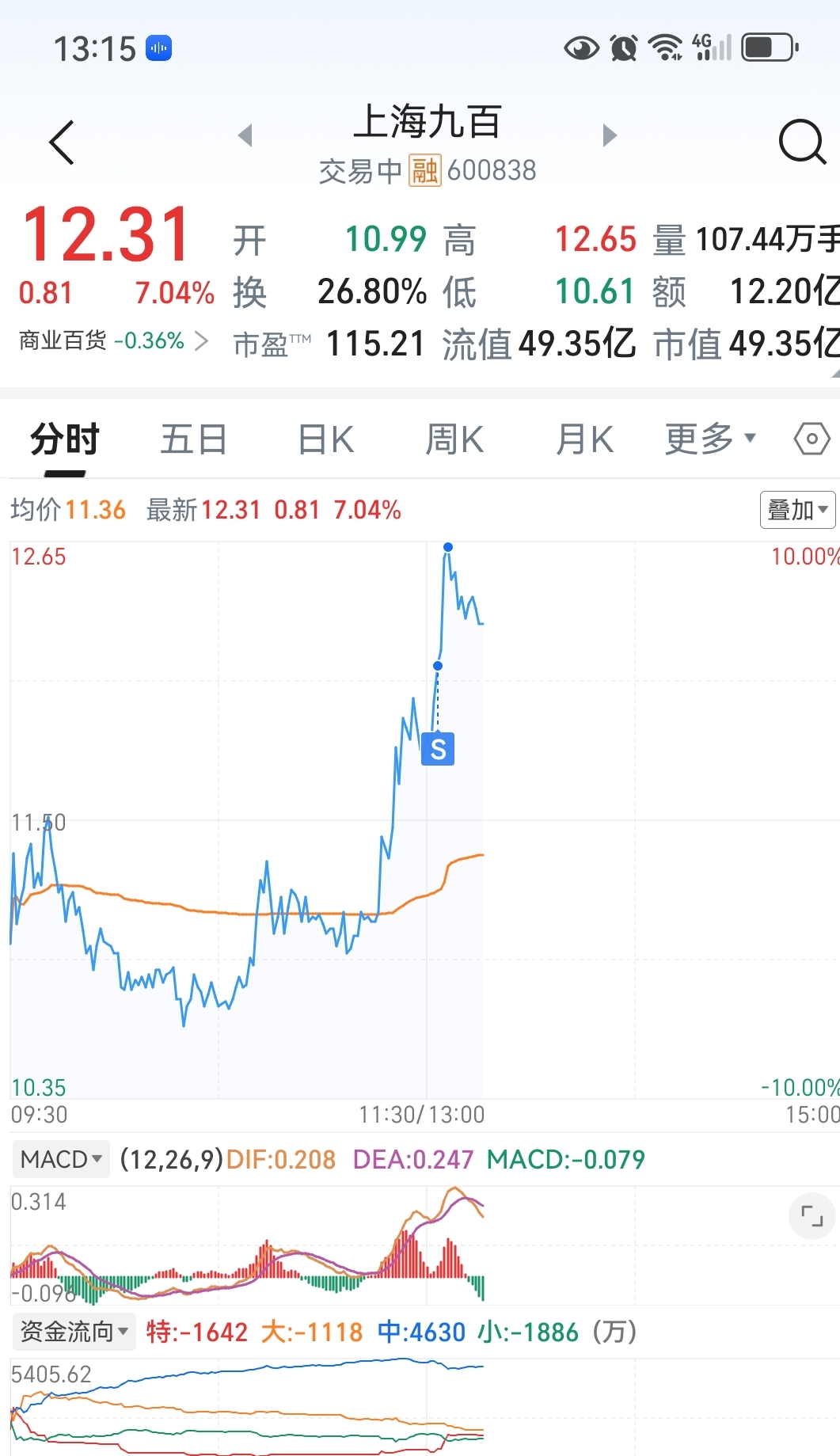 $上海九百(SH600838)$ 畏畏缩缩,难成大器!