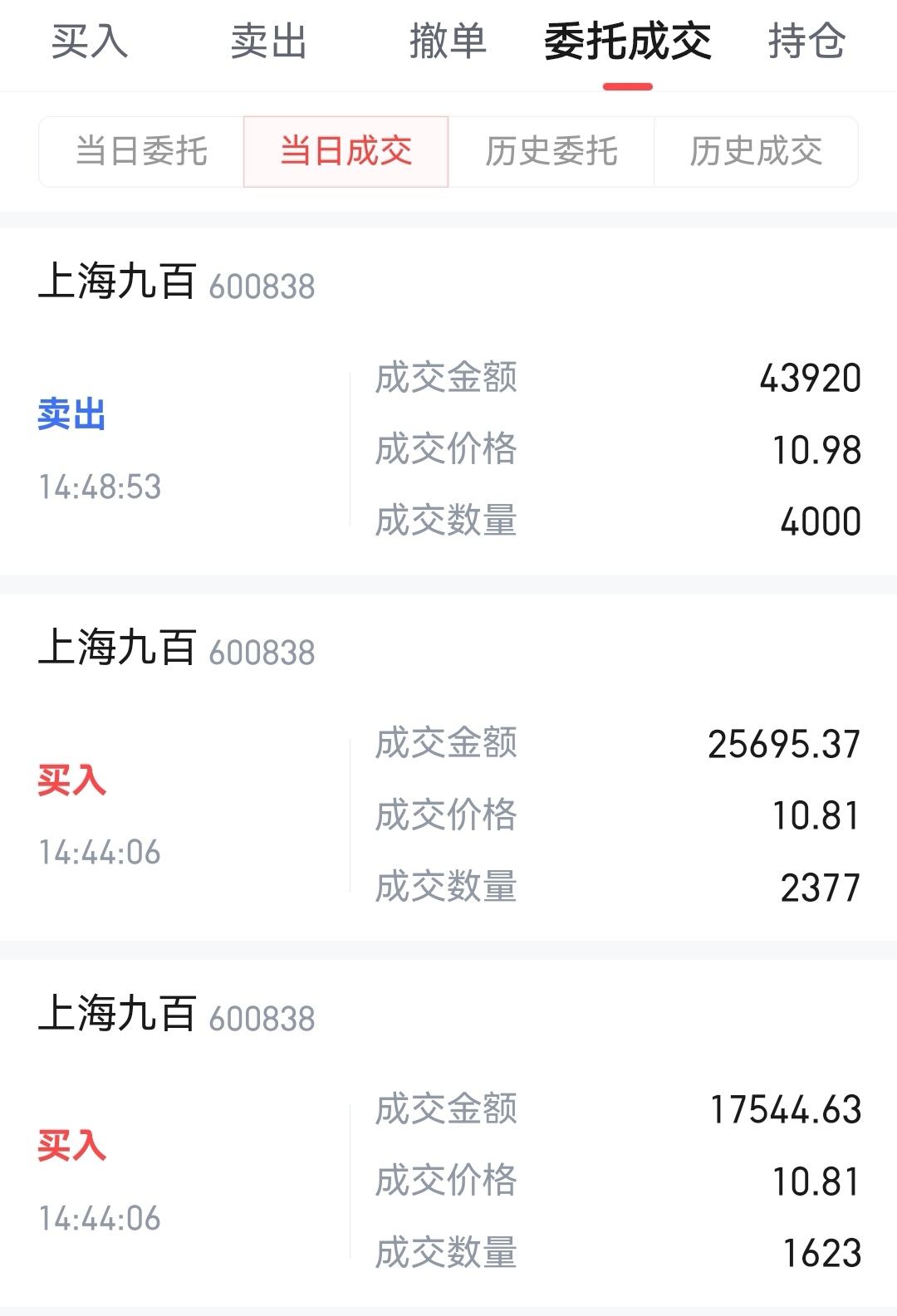 $上海九百(SH600838)$ 无所谓,再T一单。
