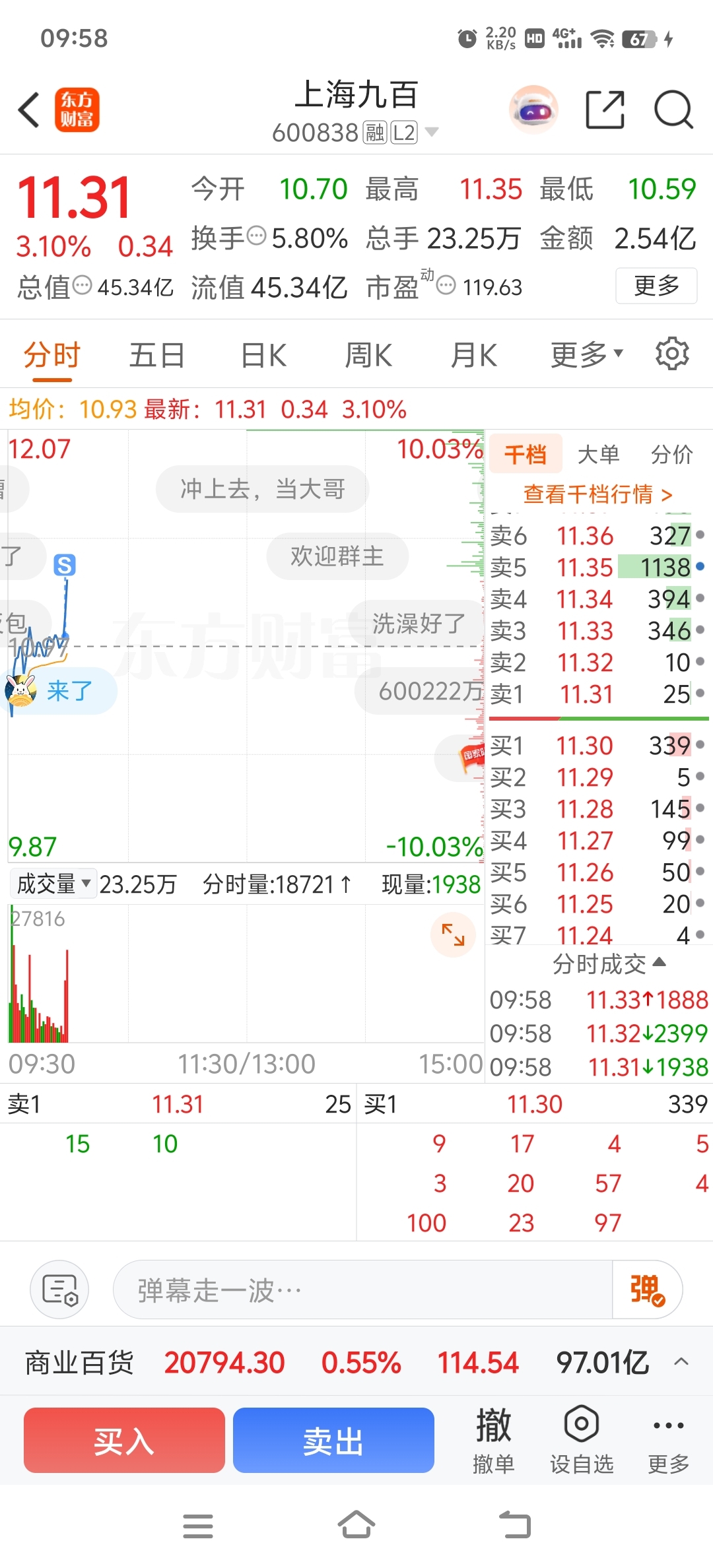 $上海九百(SH600838)$ 我这3手能触发量化