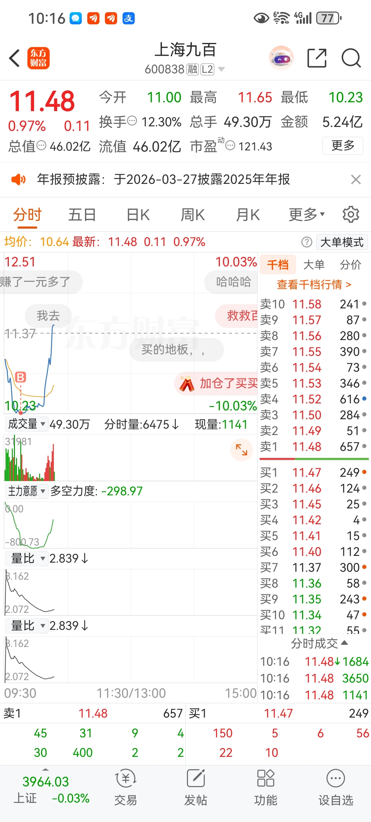 $上海九百(SH600838)$ 买个底仓起飞了