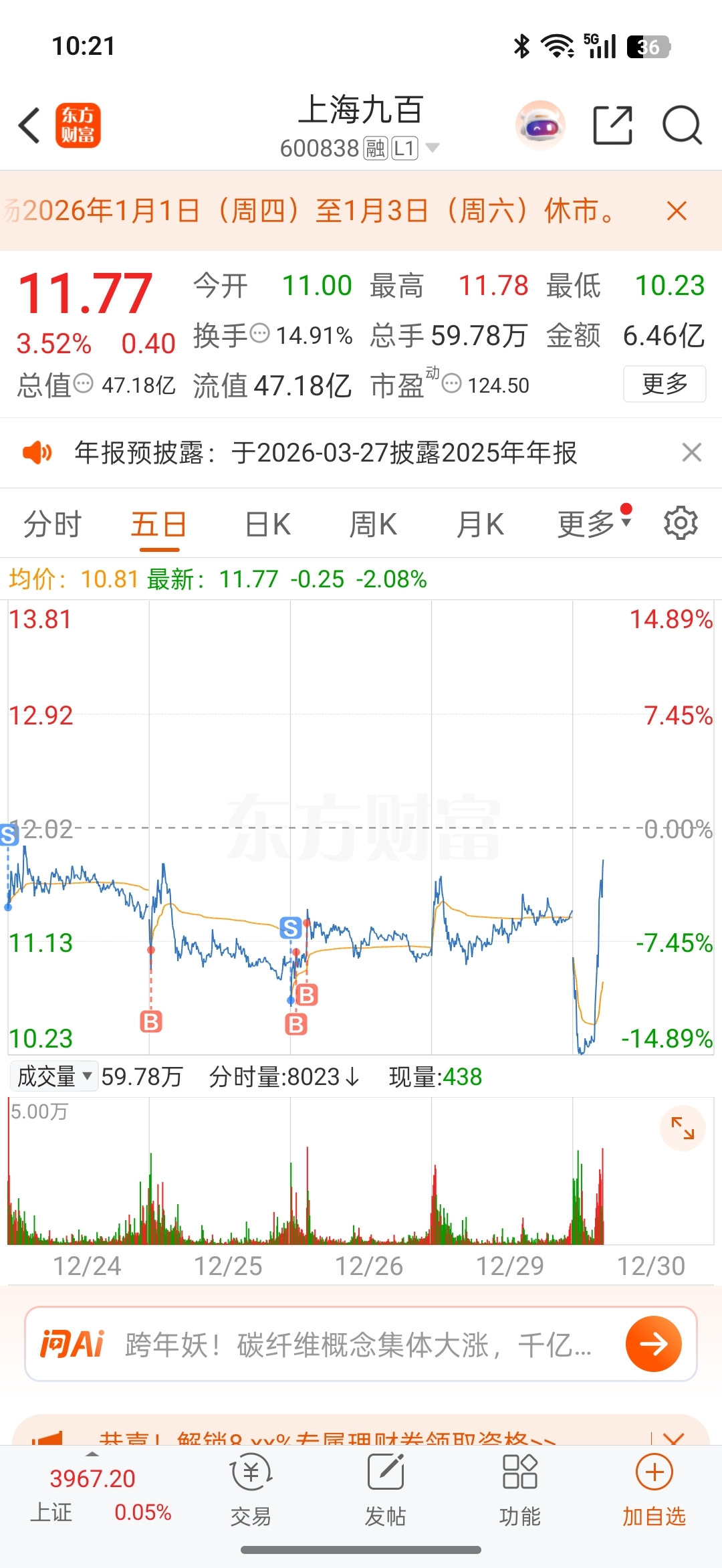 $上海九百(SH600838)$ 你很恶心你知道吗