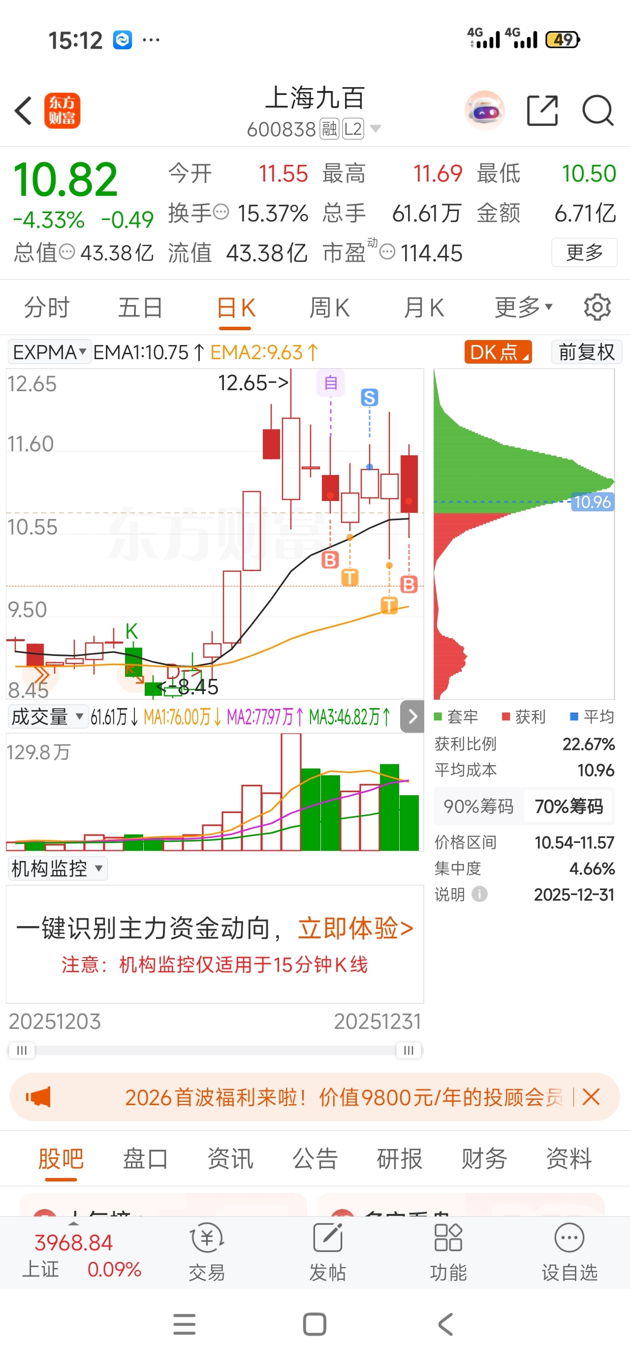 $上海九百(SH600838)$ 周一继续低吸,只要不破11.60。