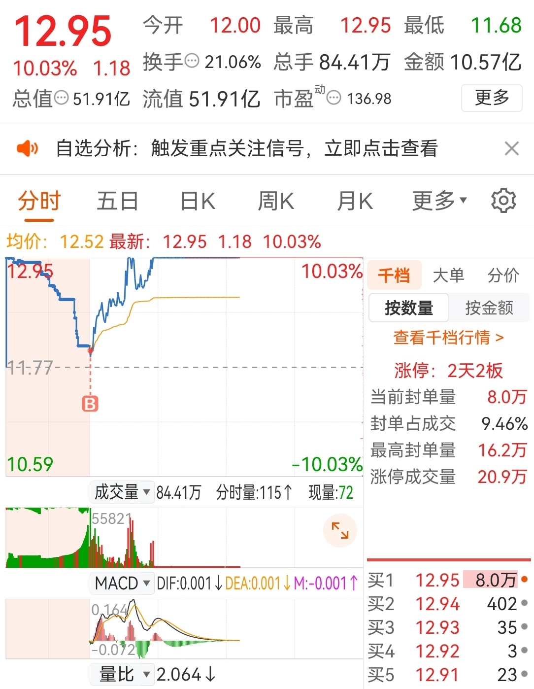 集合竞价后12以下挂单进了九百,一上午没看,没想到涨停了,有点偏赌,横盘突破新高