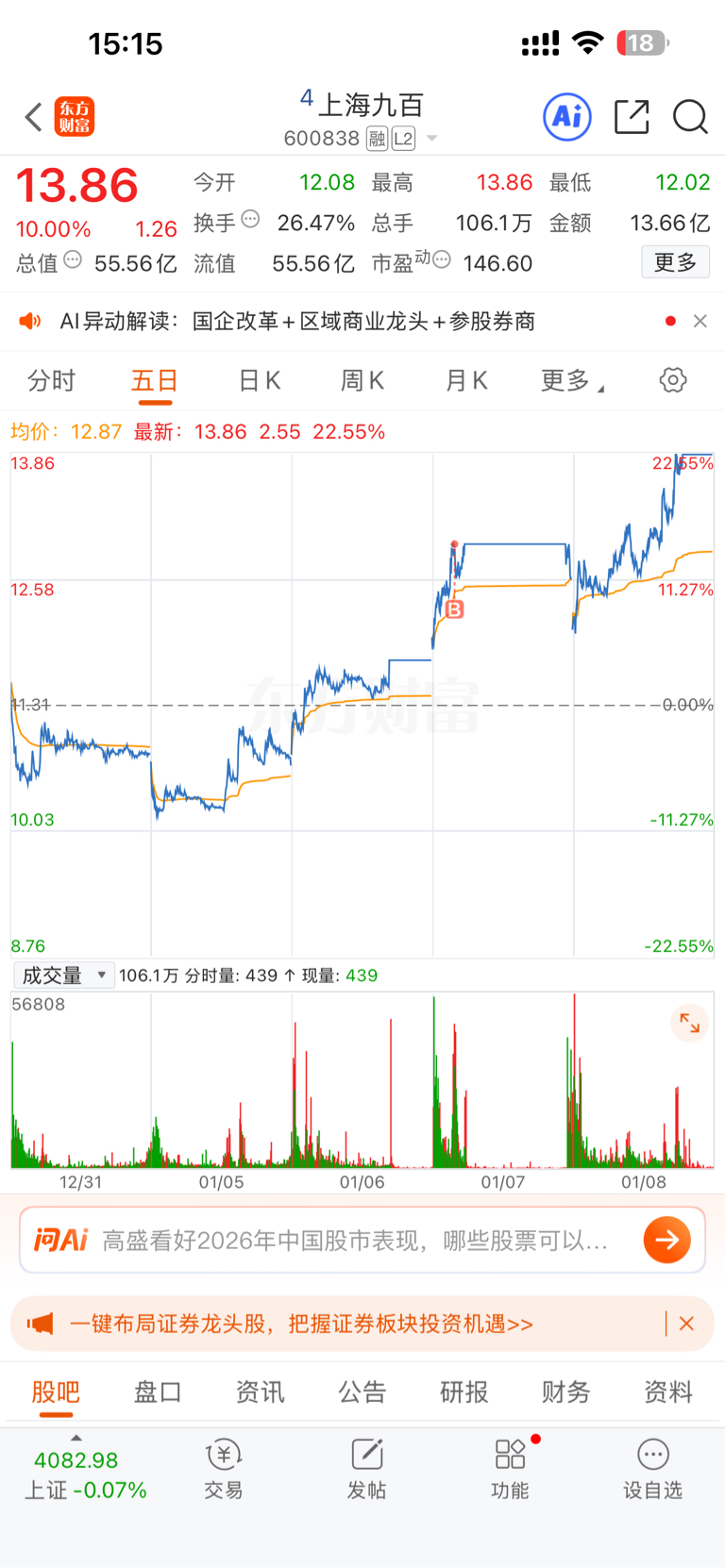 $上海九百(SH600838)$ 折磨了我俩天,要是兄弟们选择,会走还是留?