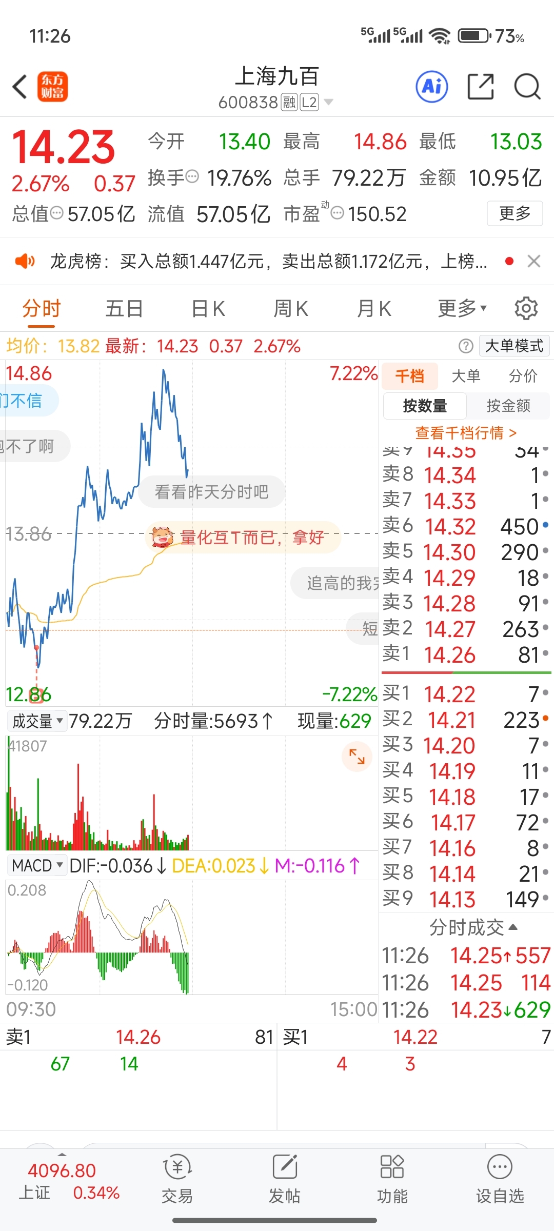$上海九百(SH600838)$ 你随意哦