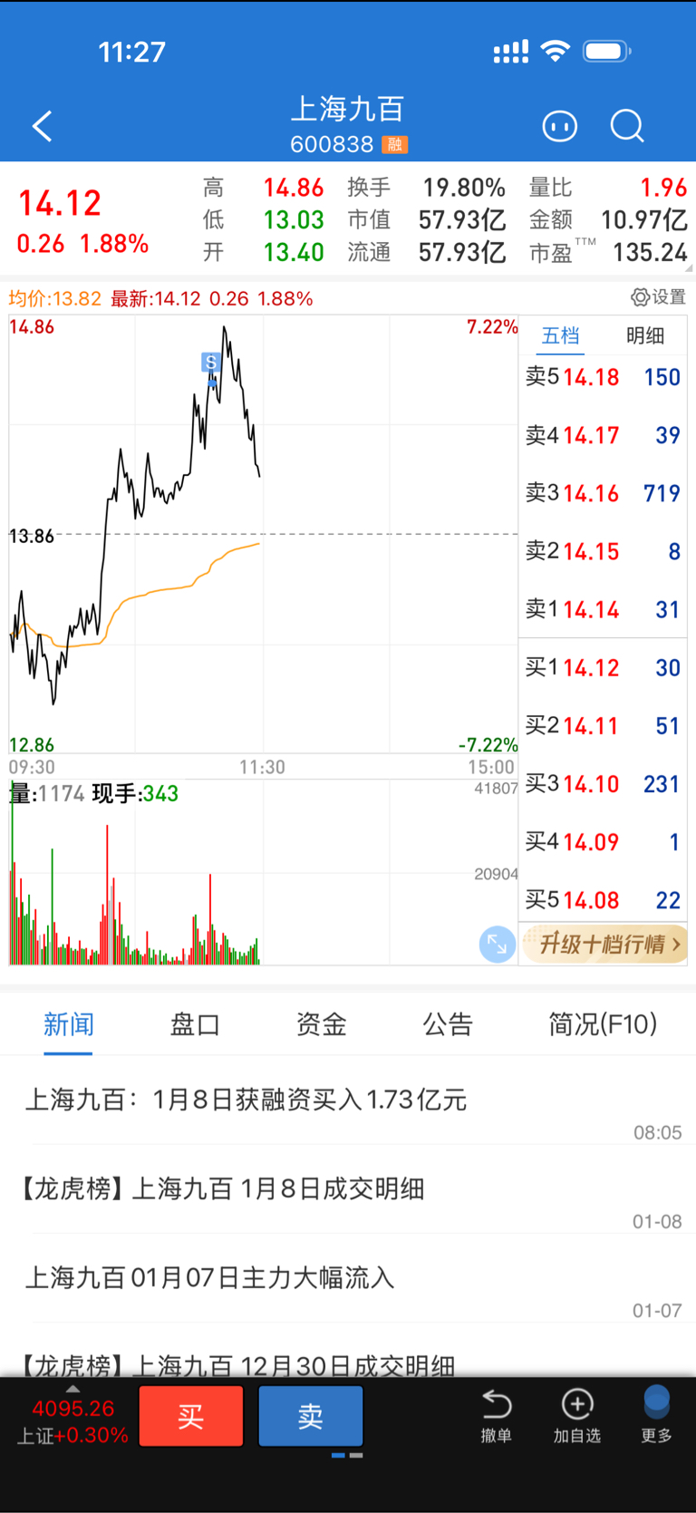 $上海九百(SH600838)$ 我要说他完蛋,他都不敢不完蛋!量不够 无持续性!