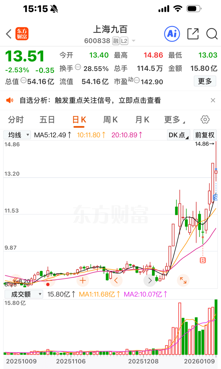 $上海九百(SH600838)$ 我承认你把我洗下去了,2026年第一支股票清仓
