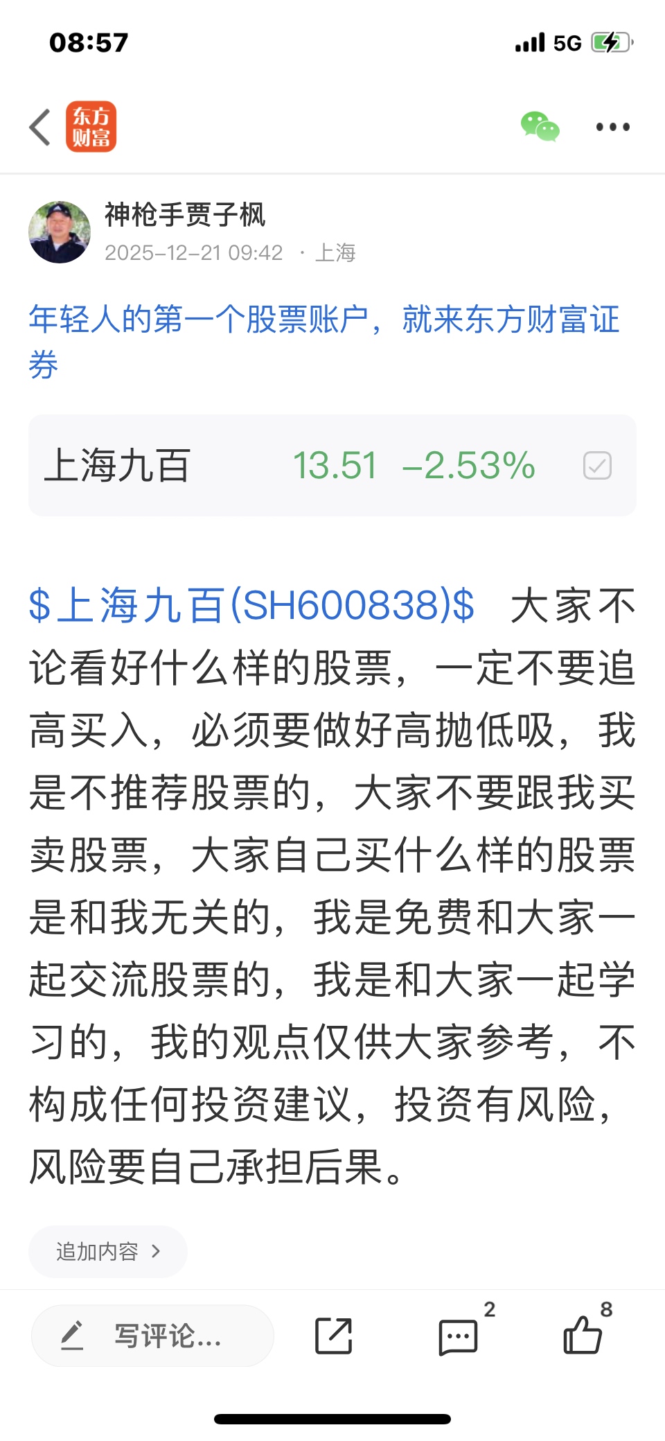 $上海九百(SH600838)$ 我是看震荡上涨的股票,大家不要追高买入,做好高抛低吸,投资有风险,风险要自己承担后果,我的观点仅供参考,