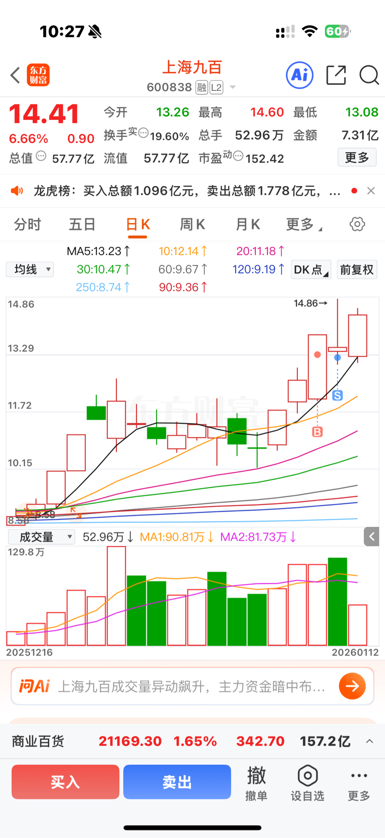 $上海九百(SH600838)$ 额...
