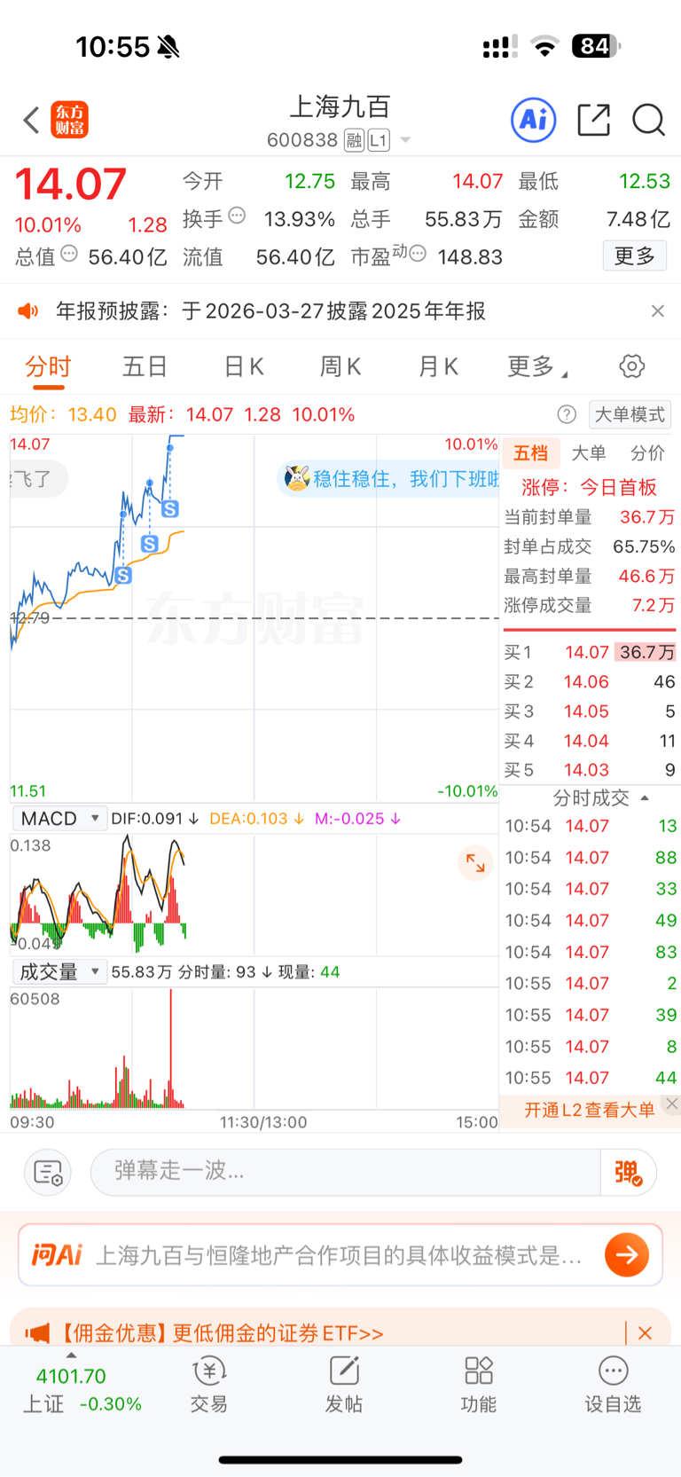 $上海九百(SH600838)$ 留下的发财