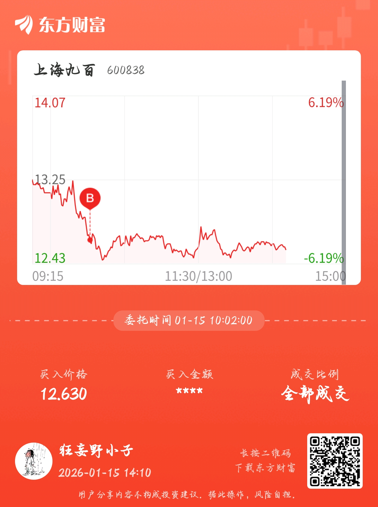 温馨提示: 1.根据《证券法》规定,禁止编造、传播虚假信息或者误导性信息,扰乱证券市场;2.用户在本社区发表的所有资料、言论等仅代表个人观点,与本网站立场无关,不对您构成任何投资建议。用户应基于自己的独立判断,自行决定证券投资并承担相应风险。《东方财富社区管理规定》