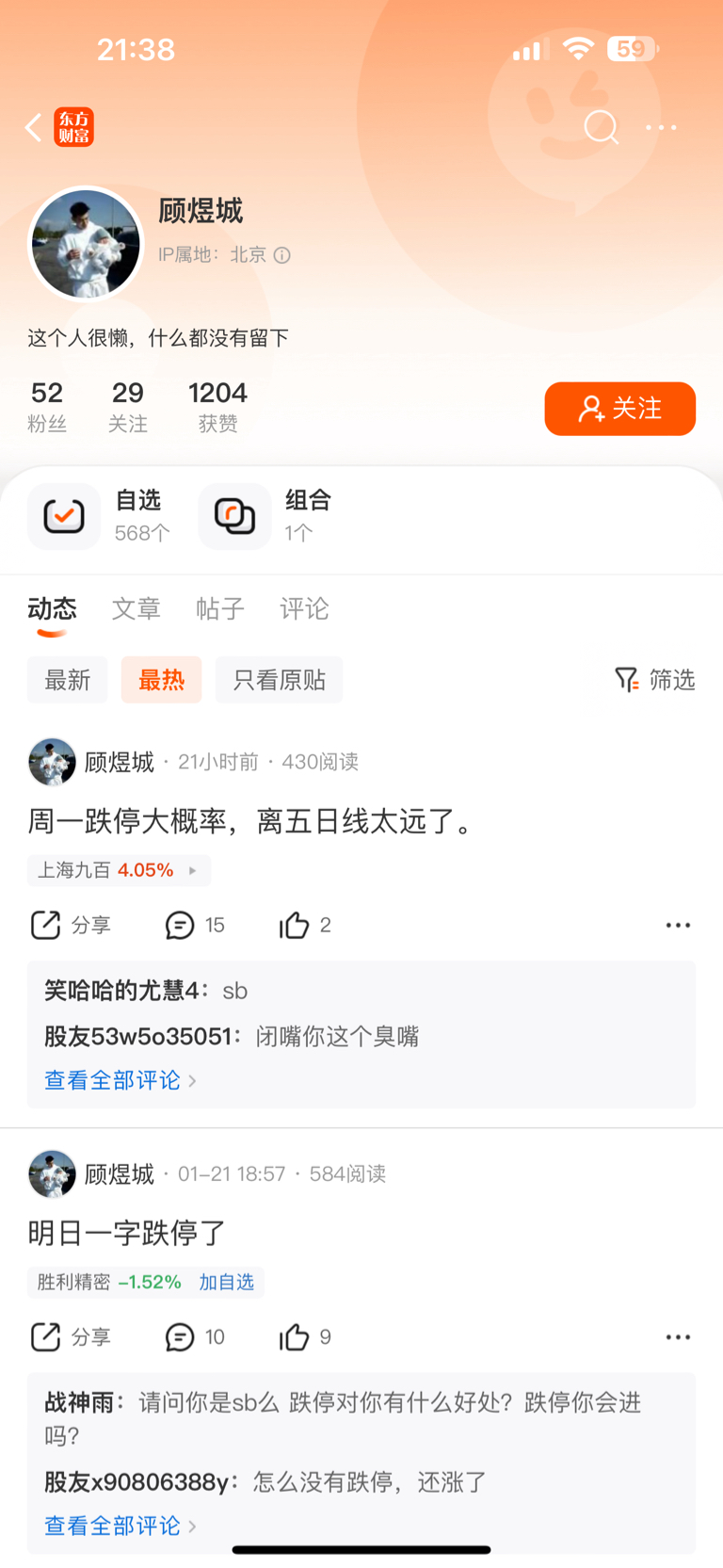 $上海九百(SH600838)$ 这小子ip还是北京的,不会是在北京跑外卖的吧?跑外卖不丢人,各行各业都值得被尊重,可是你连5日线,20日线都不知道在什么位置,何必出来扣键盘献丑呢?多丢人啊!