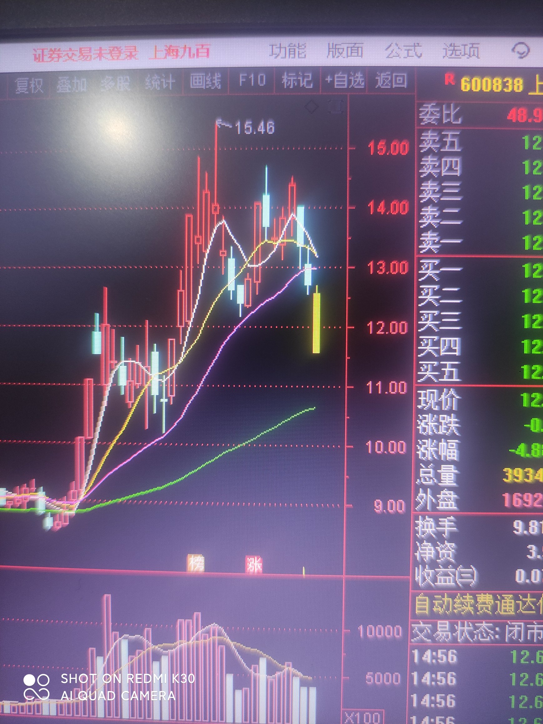$上海九百(SH600838)$ 趋势彻底坏了,明天又是一个跌停,不信,看图说话