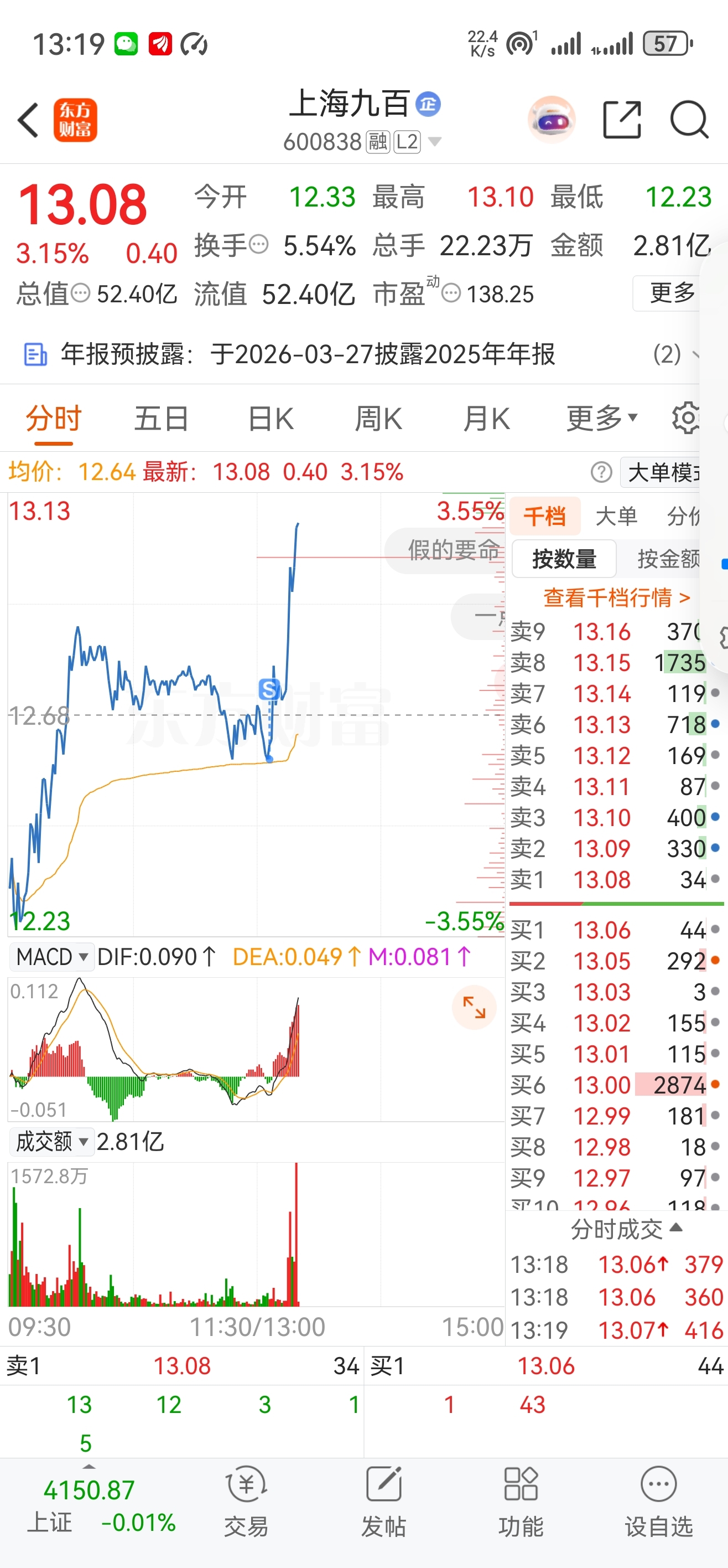 $上海九百(SH600838)$ 差我这点?
