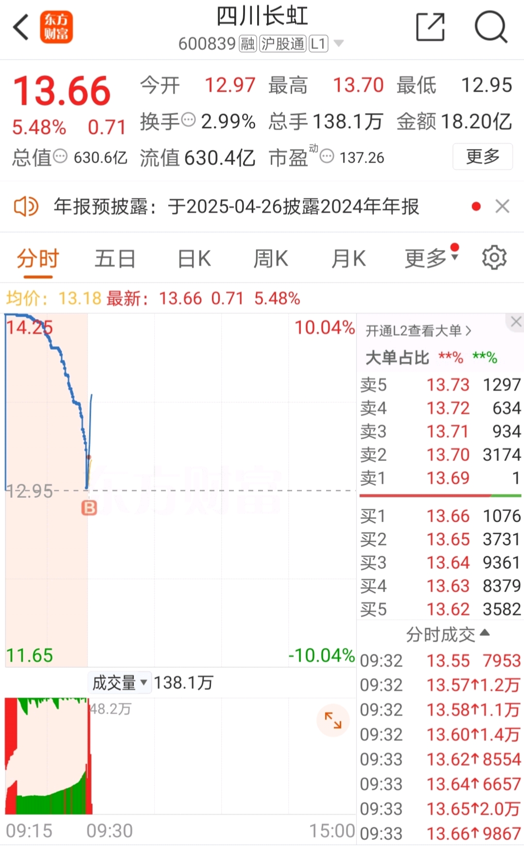 $四川长虹(SH600839)$ 早盘拉上去却又回落下来,我个人认为是在洗盘调整从该股的5日线来看,短期之内是还会有一定的上升空间的。