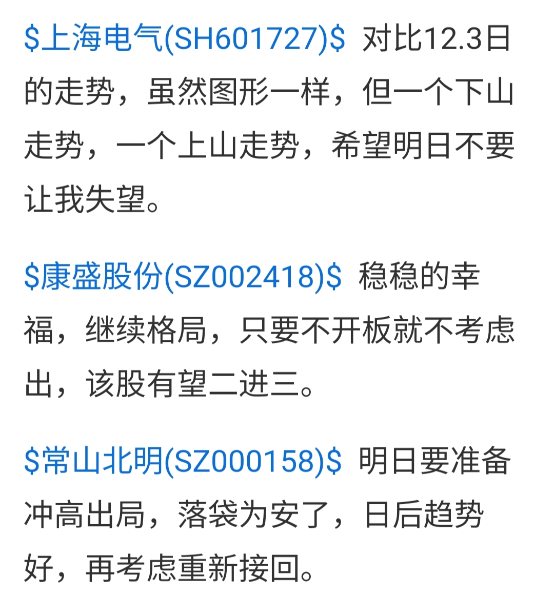 $上海电气(SH601727)$ $康盛股份(SZ002418)$ 本人准备下午先冲高出局了。