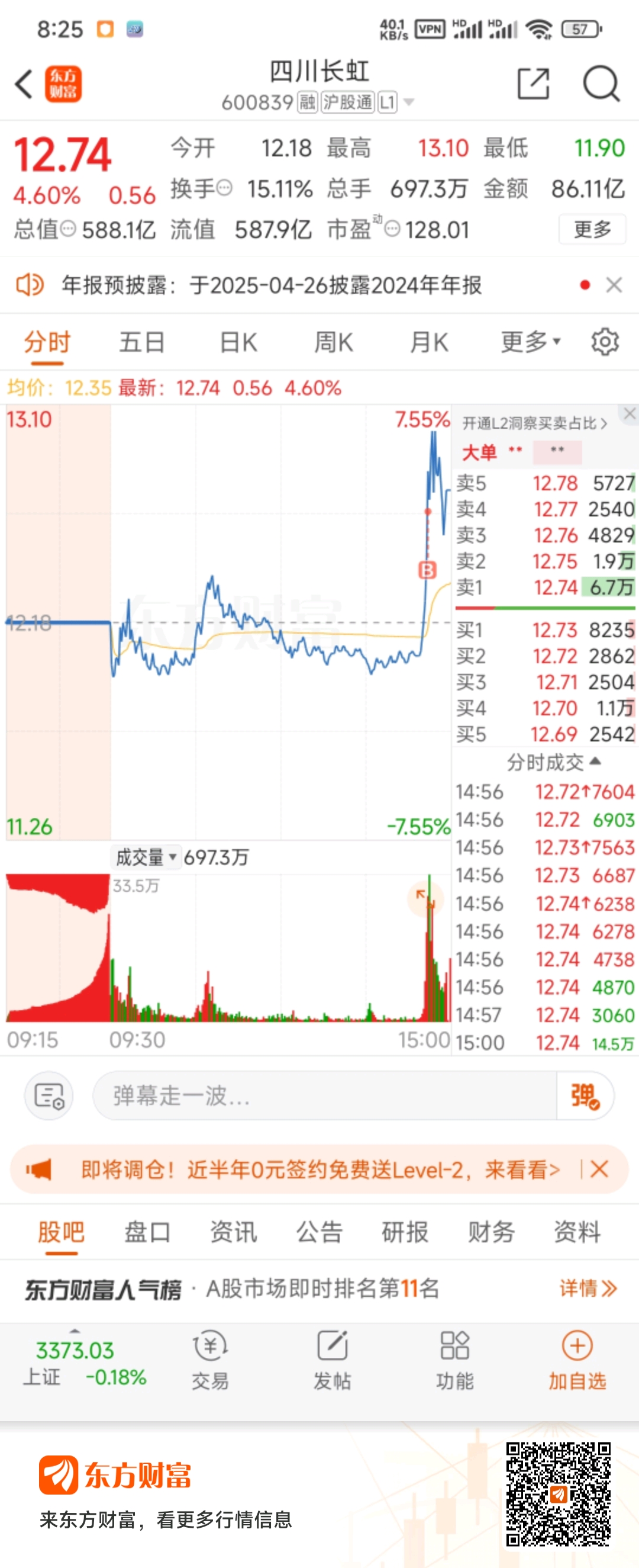 $四川长虹(SH600839)$ 如果明天低开就是绝佳的做t机会,还是别被洗下车了。