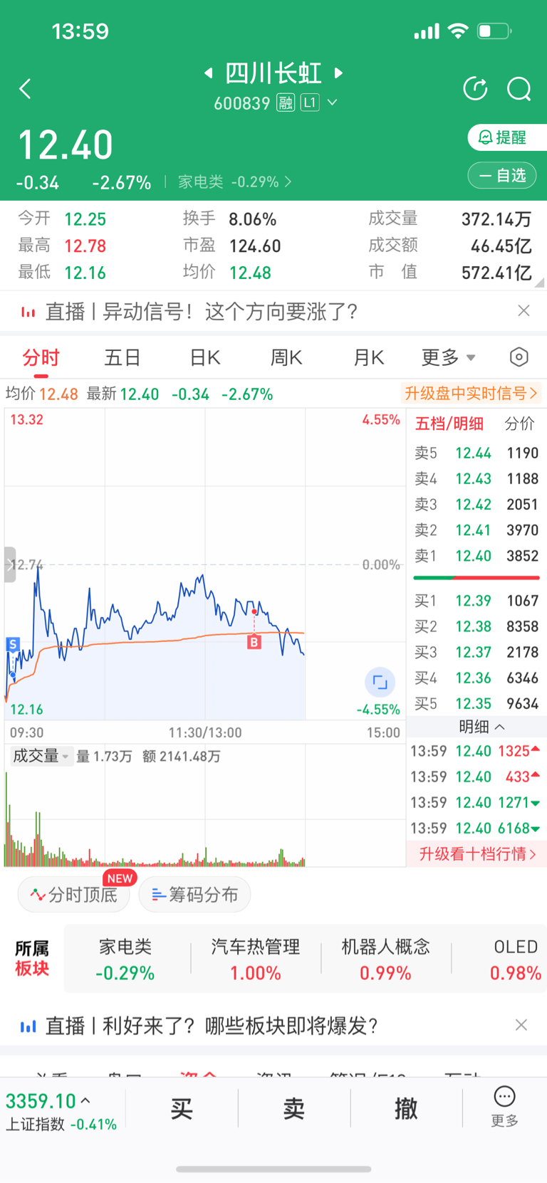 $四川长虹(SH600839)$ 本来是赚钱的,现在好了,又追进去变成亏钱了