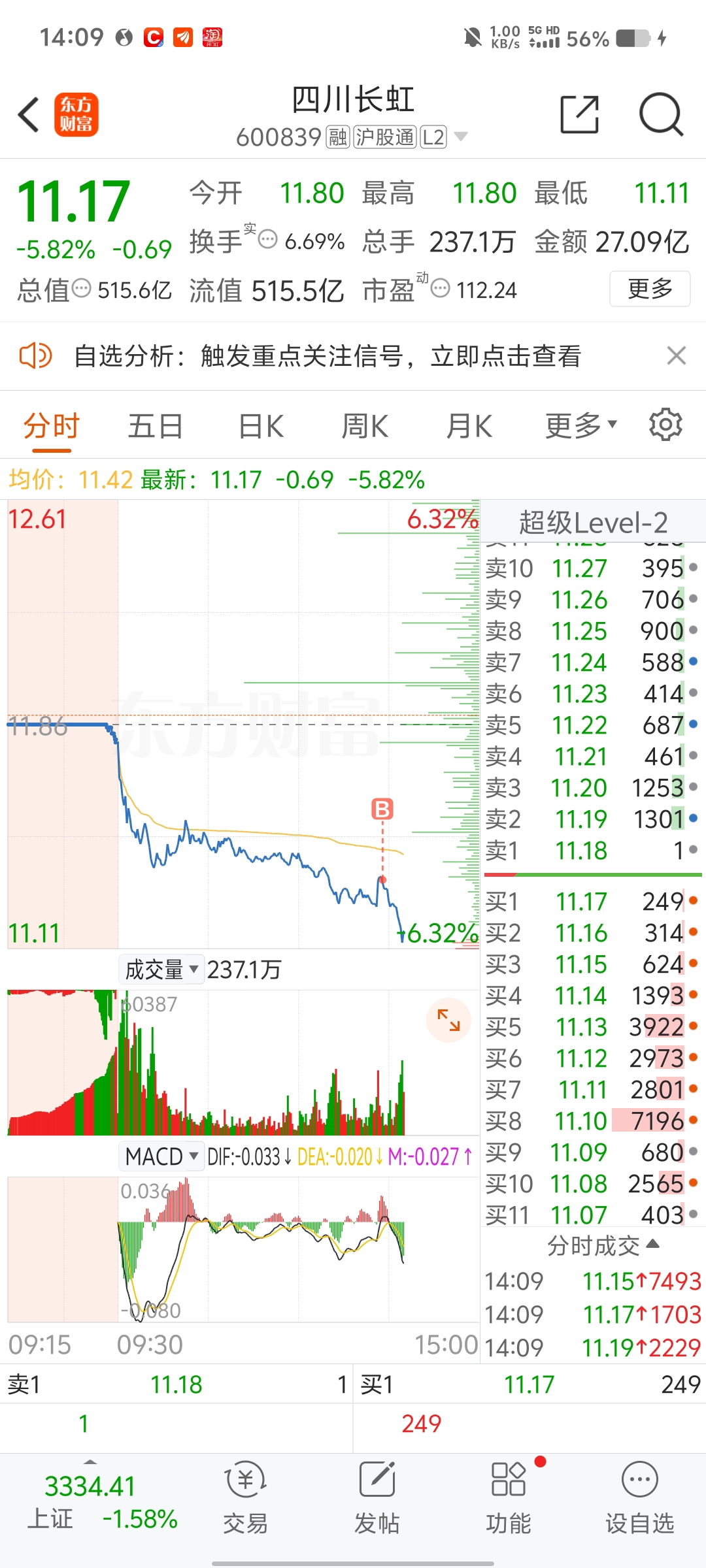 $四川长虹(SH600839)$ 对不起各位 是我砸下去的