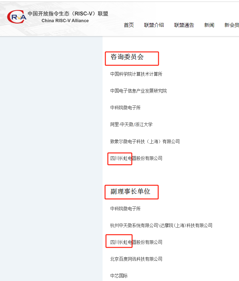 四川长虹:RISC-V联盟咨询委员会以及常务副理事单位