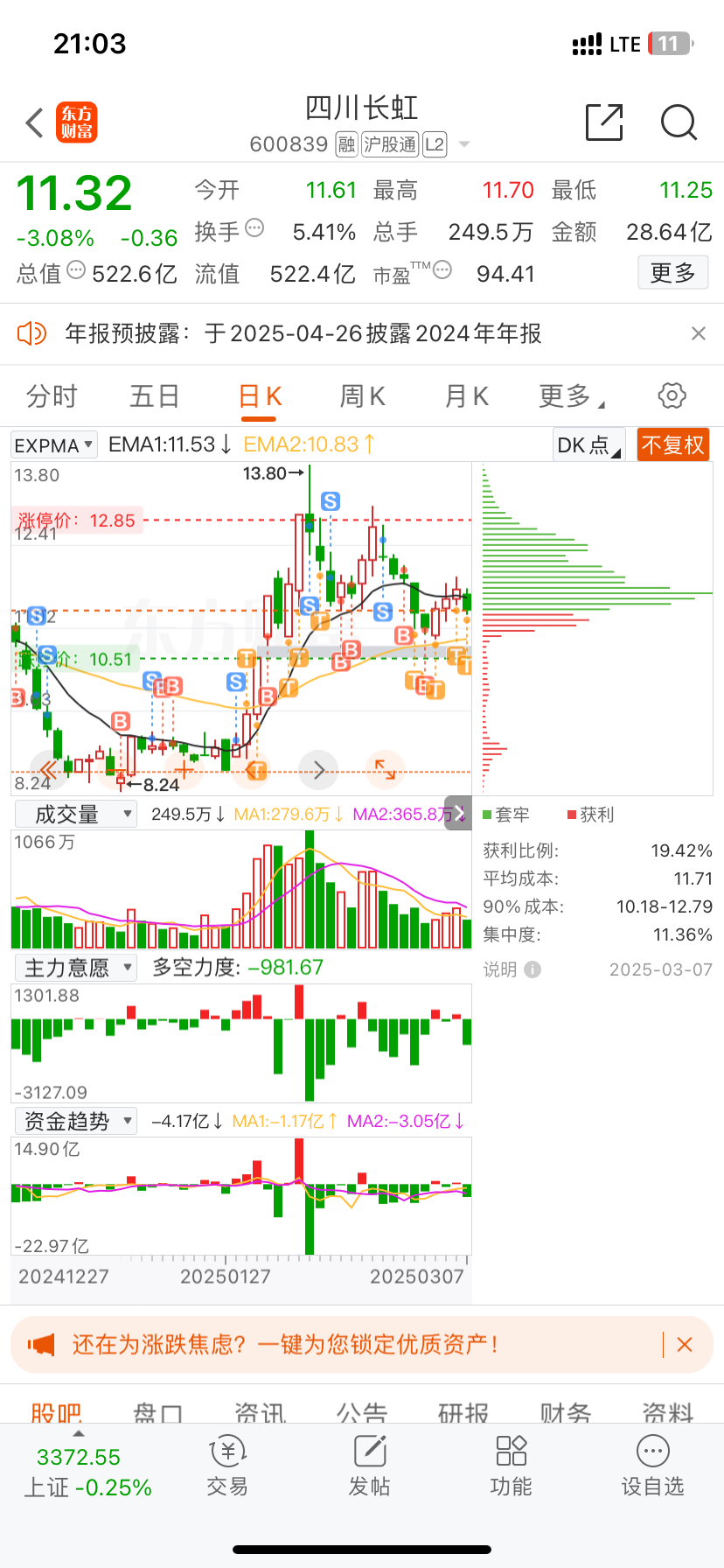 $四川长虹(SH600839)$ 狗主力 老是想套我 我一加仓 你就要套我 你以为我会像之前的 莲花 欧菲光 巨轮 跨境通 直接割了吗?