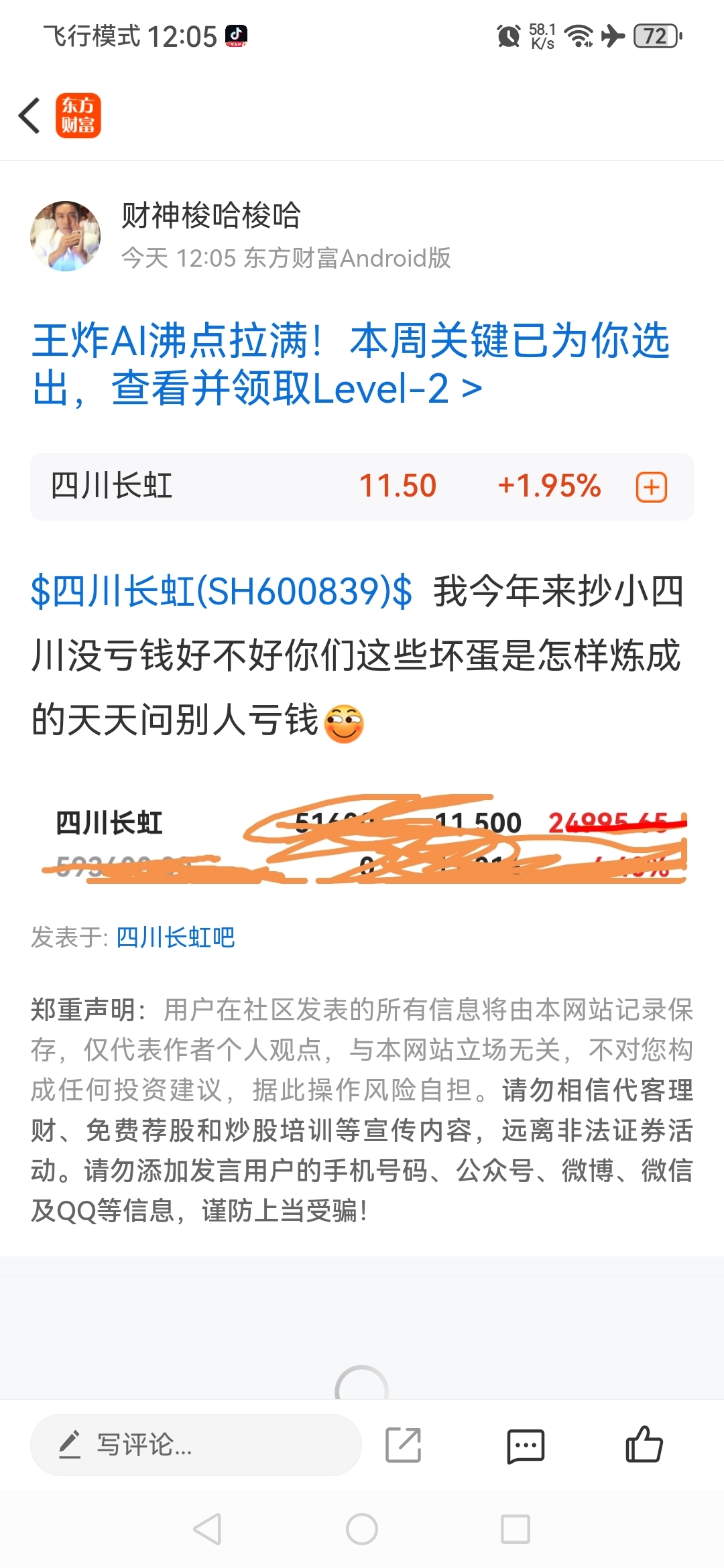 温馨提示: 1.根据《证券法》规定,禁止编造、传播虚假信息或者误导性信息,扰乱证券市场;2.用户在本社区发表的所有资料、言论等仅代表个人观点,与本网站立场无关,不对您构成任何投资建议。用户应基于自己的独立判断,自行决定证券投资并承担相应风险。《东方财富社区管理规定》