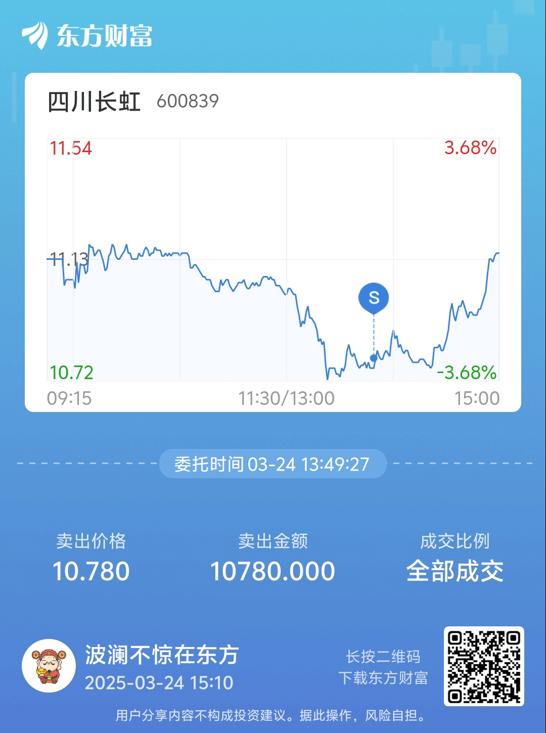 $四川长虹(SH600839)$ 硬亏1000,就是手贱动来动去的