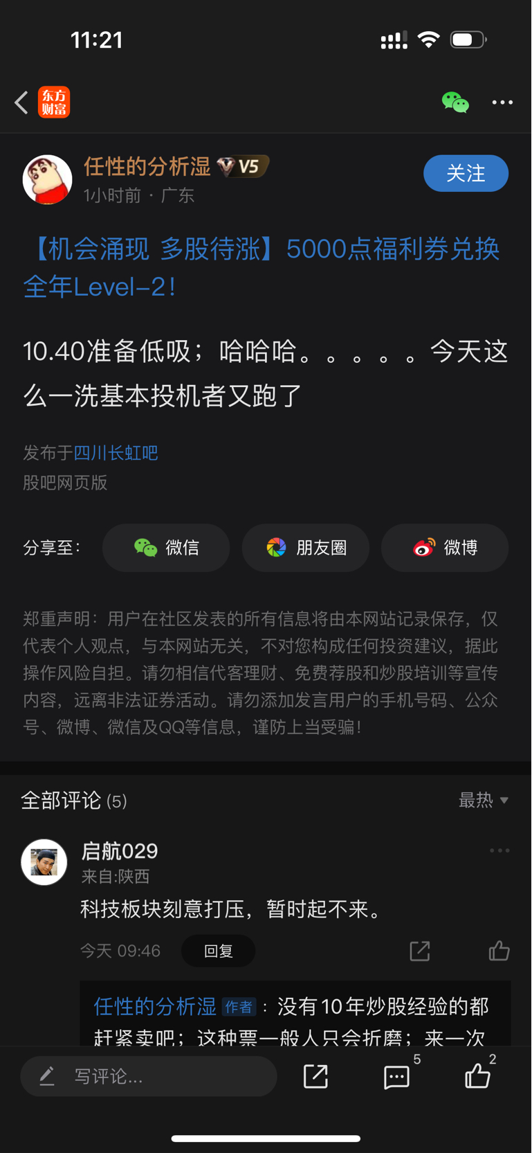 温馨提示: 1.根据《证券法》规定,禁止编造、传播虚假信息或者误导性信息,扰乱证券市场;2.用户在本社区发表的所有资料、言论等仅代表个人观点,与本网站立场无关,不对您构成任何投资建议。用户应基于自己的独立判断,自行决定证券投资并承担相应风险。《东方财富社区管理规定》