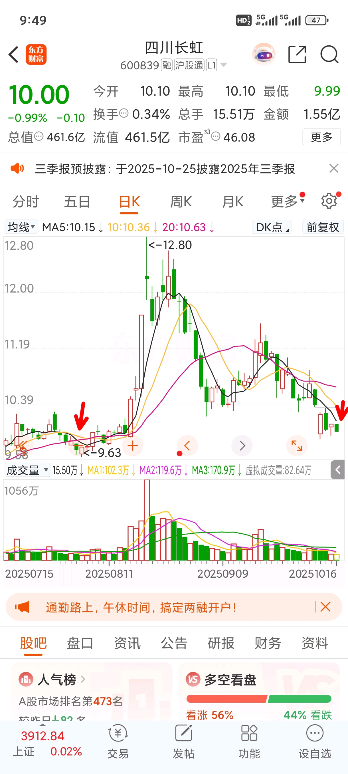 $四川长虹(SH600839)$ 接下来一周7天内都是横盘。上下跌幅不超3%