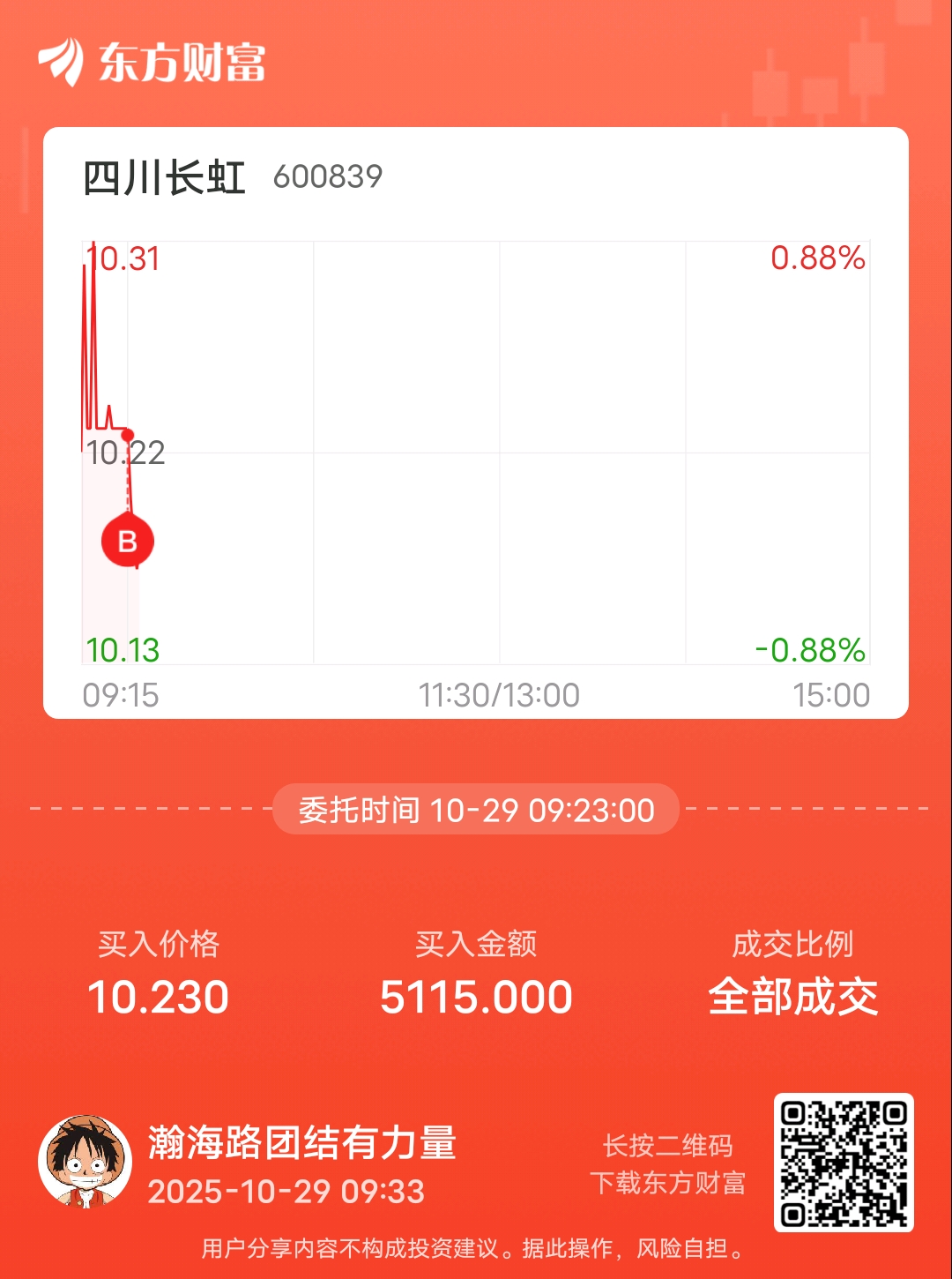 委托标的:长虹买卖方向:买笔记:一路长虹