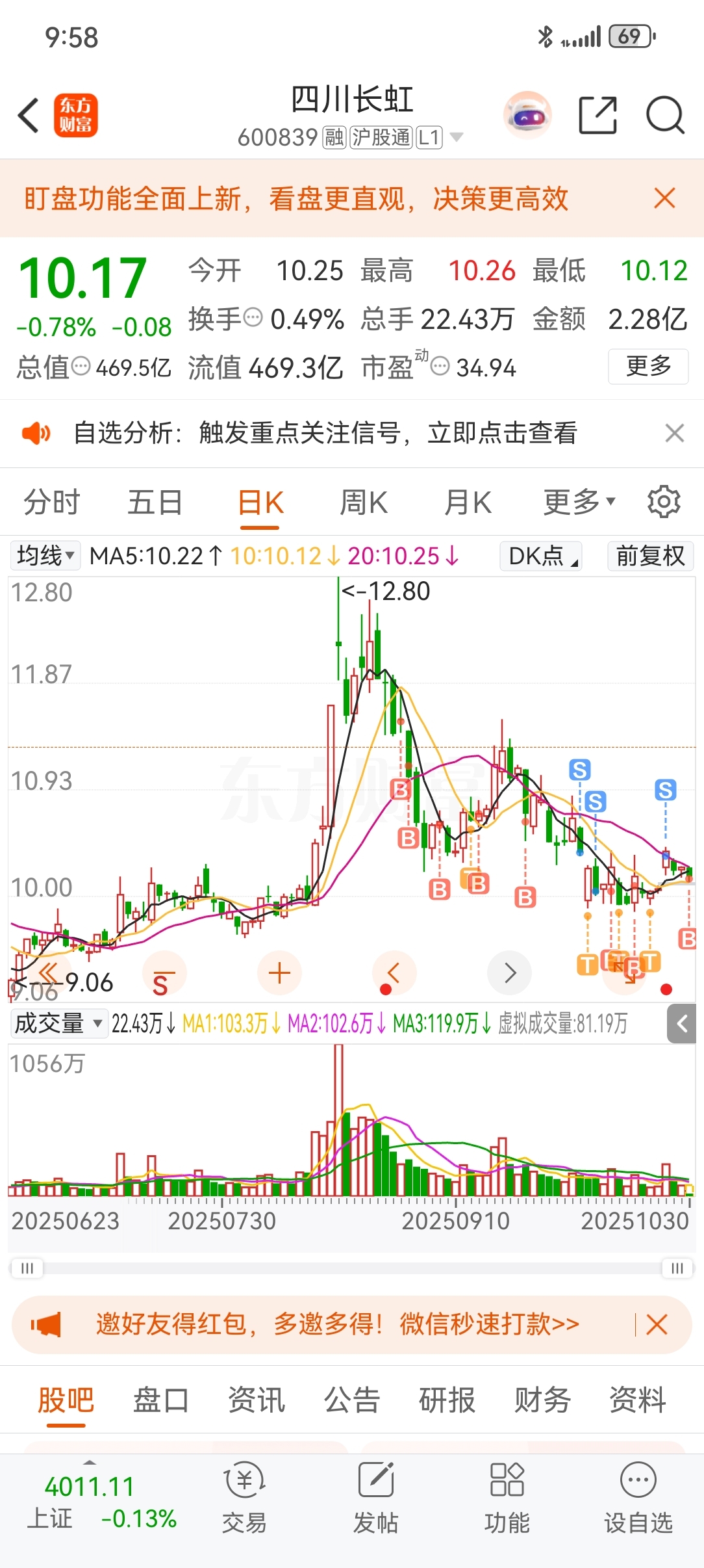 $四川长虹(SH600839)$ 两个人在一起并不是因为真爱,也可能只是它亏欠我太多!!!