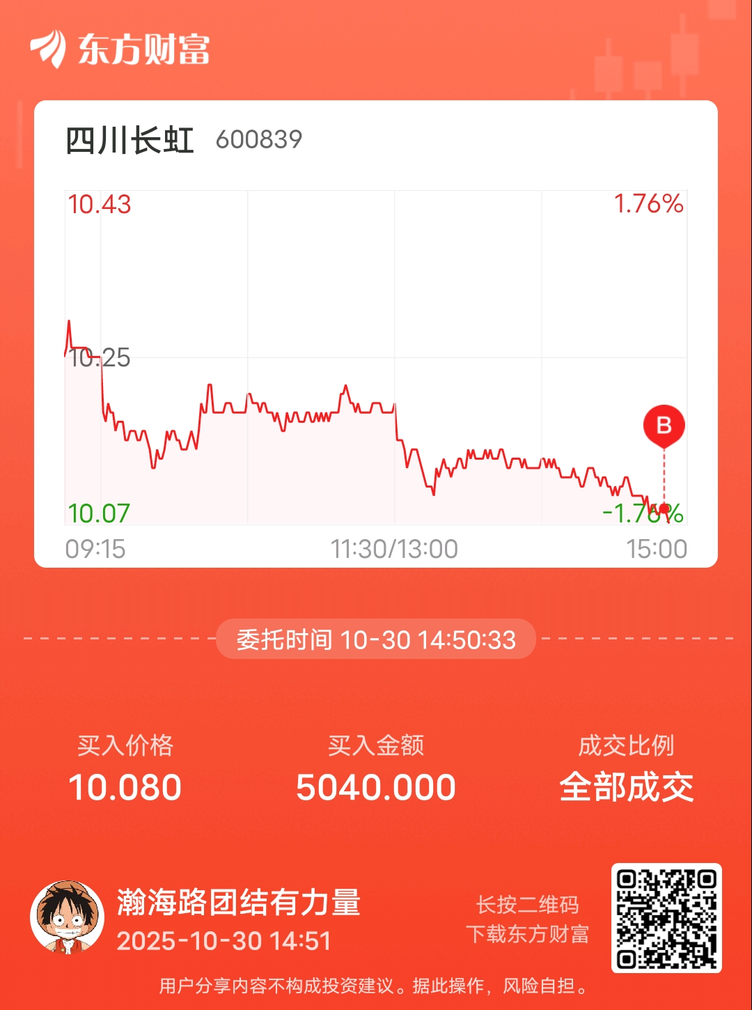 委托标的:四川长虹买卖方向:买笔记:技术分析